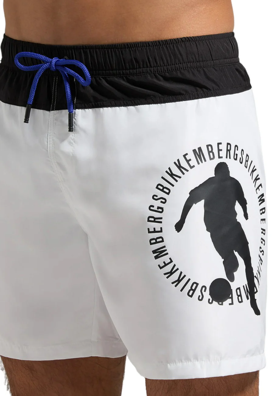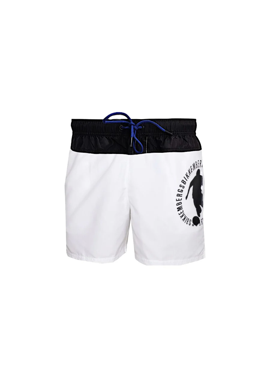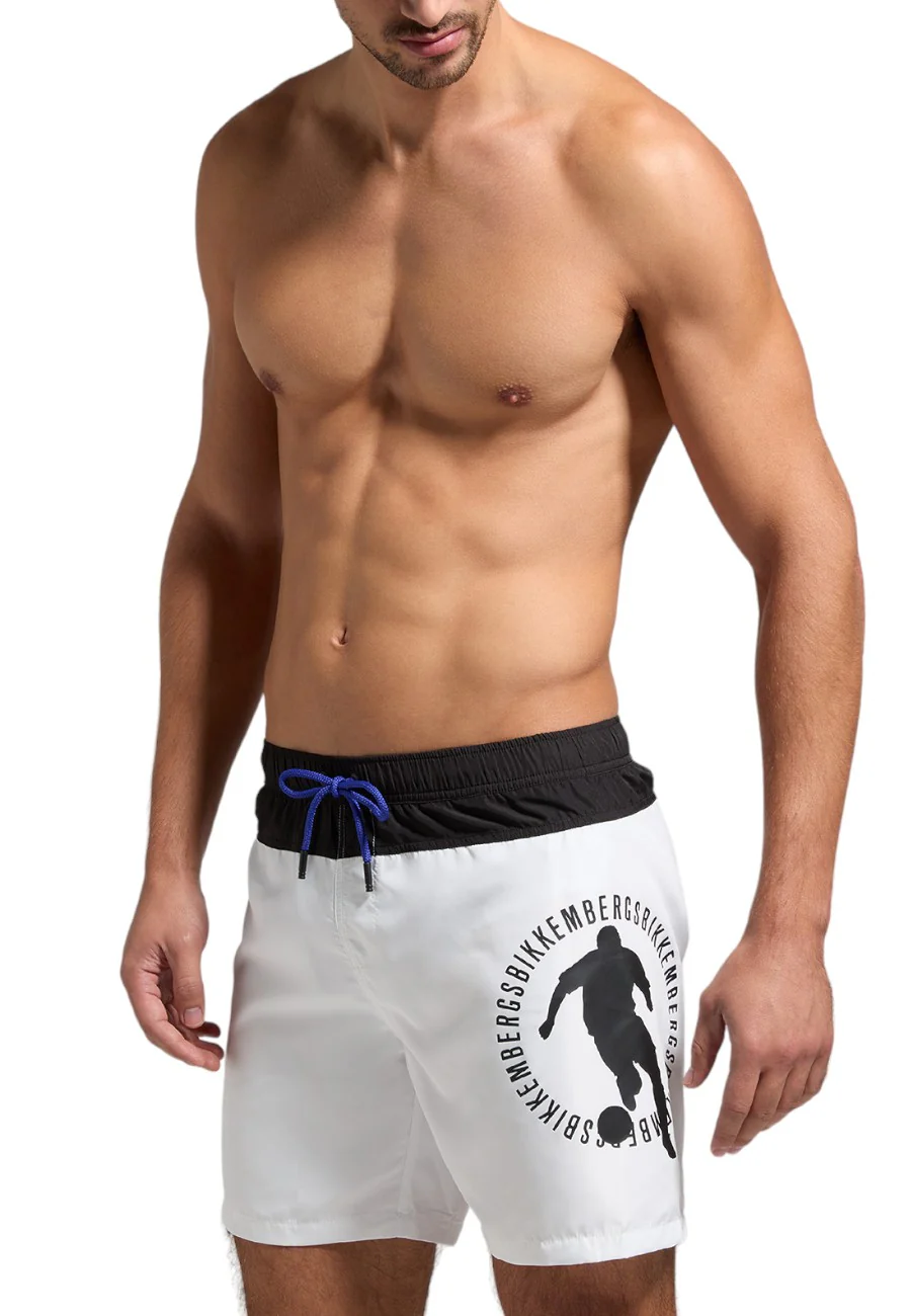 Colori a contrasto per il costume da uomo arricchito dalla stampa dell’iconico giocatore di calcio Bikkembergs. Questo costume in poliestere รจ dotato di vita elasticizzata con coulisse. Pratico e ricco di stile.