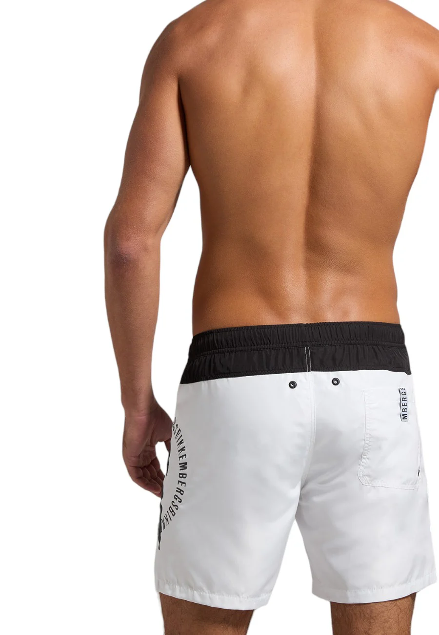 Colori a contrasto per il costume da uomo arricchito dalla stampa dell’iconico giocatore di calcio Bikkembergs. Questo costume in poliestere รจ dotato di vita elasticizzata con coulisse. Pratico e ricco di stile. 100% poliestere