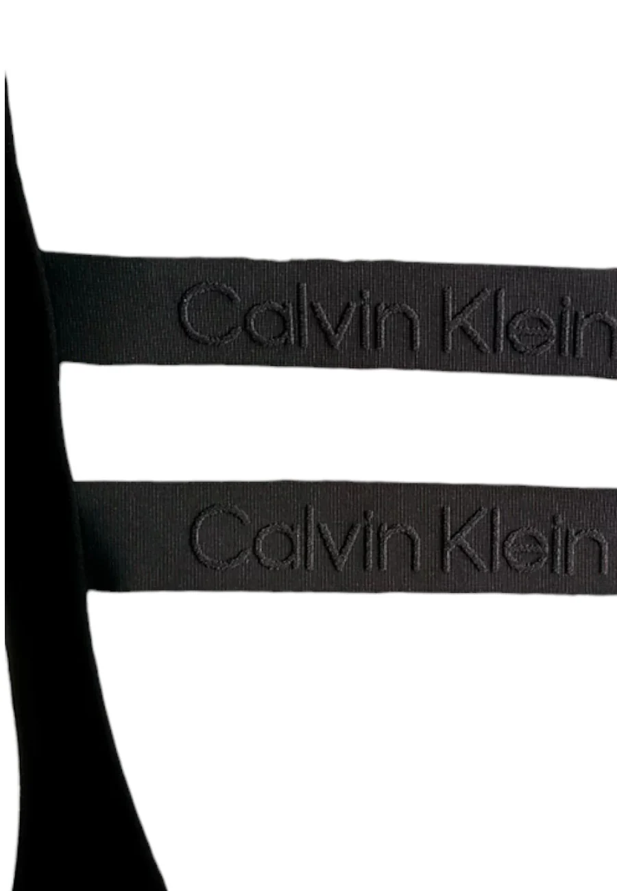 Scollo rotondoโขcoppe sagomate morbideโขimbottitura staccabileโขdesign con apertura sul retroโขfinitura elasticizzata con logo Calvin Klein tono su tono sul retro.