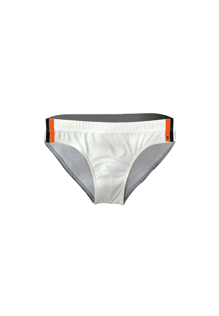 Costume slip mare uomo made in Italy. Doppio colore fronte/retro con dettagli arancio.