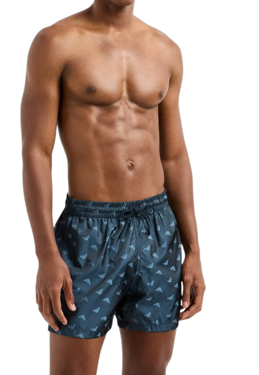Costume con coulisse in vita. Il tessuto water repellent presenta un esclusiva lavorazione per offrire l’ effetto iridescente e stampa decorativa di collezione. 54% poliammide, 46% poliestere