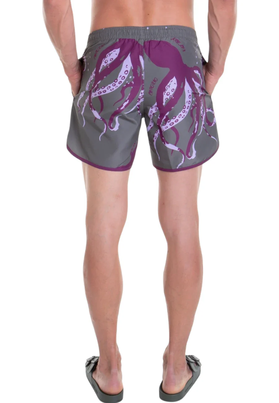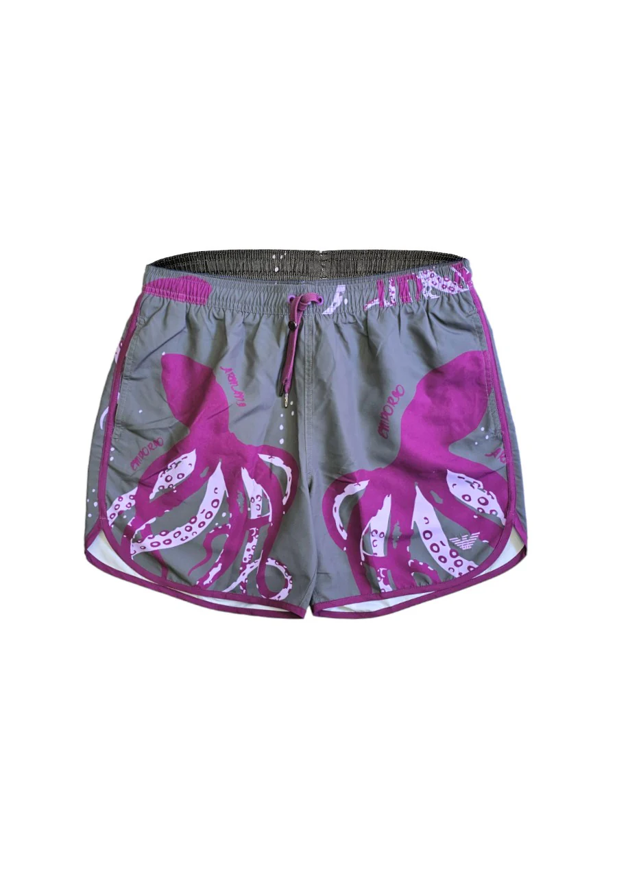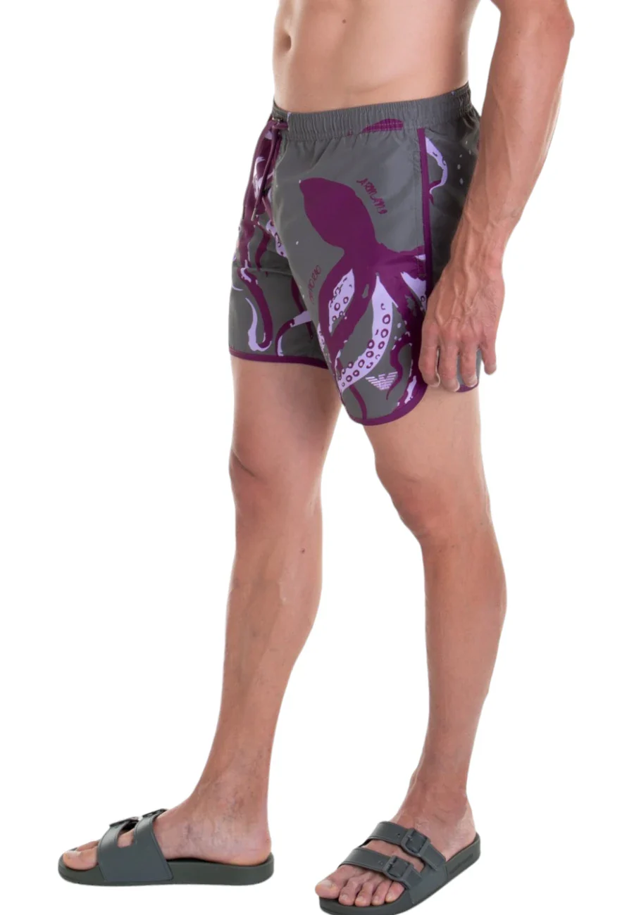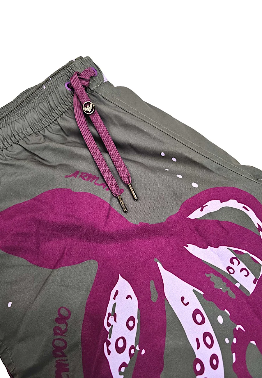 Costume modello boxer con coulisse in vita. Realizzato in tessuto water repellent, fondo verde militare e fantasia octopus.