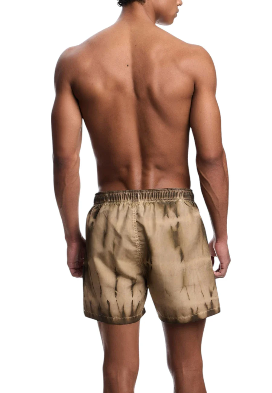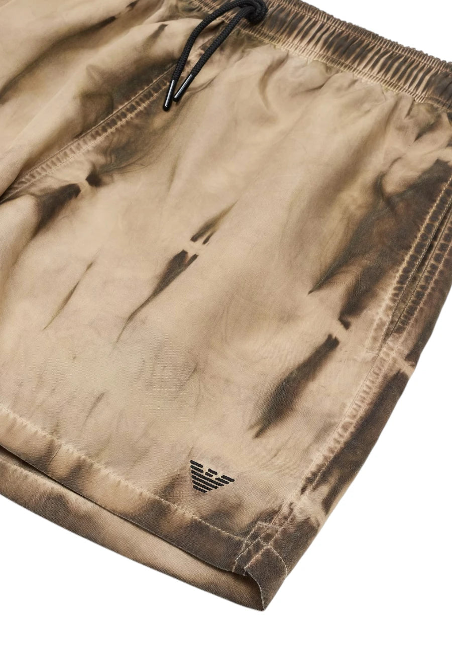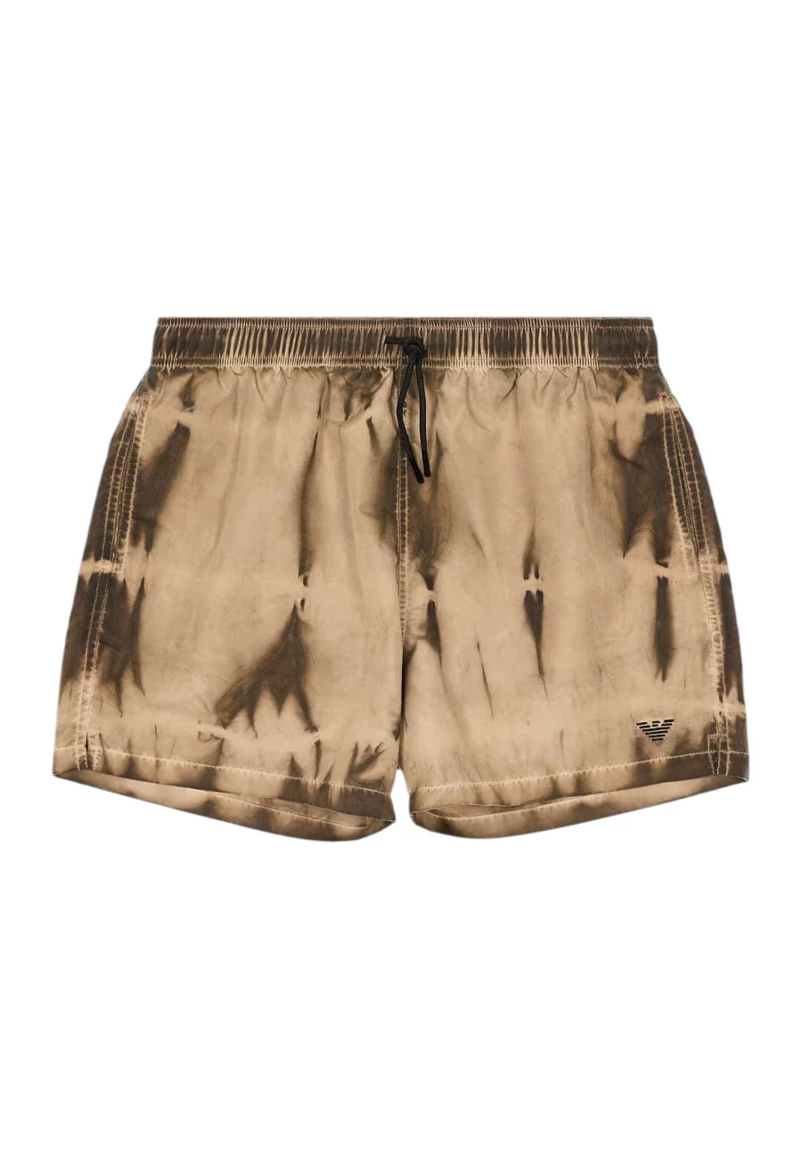 Costume modello shorts con coulisse in vita. Il capo presenta pratiche tasche laterali e colorazione effetto tye dye che percorre tutto il tessuto. 100% poliestere
