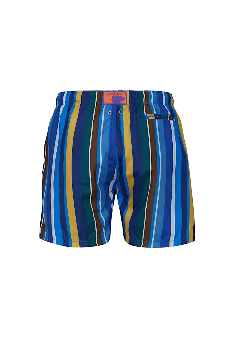 Costume da uomo modello boxer realizzato in Italia in fibra sintetica. L’elastico in vita garantisce il massimo comfort. L’iconica fantasia a righe multicolor nei toni del blu tiene fede alla tradizione Gallo, sinonimo di qualitร ed eccellenza italiana dal 1927.