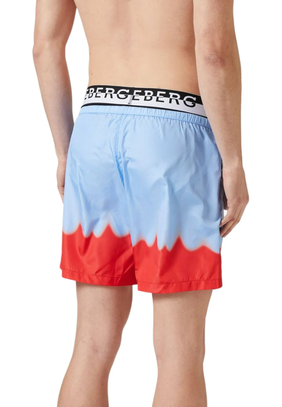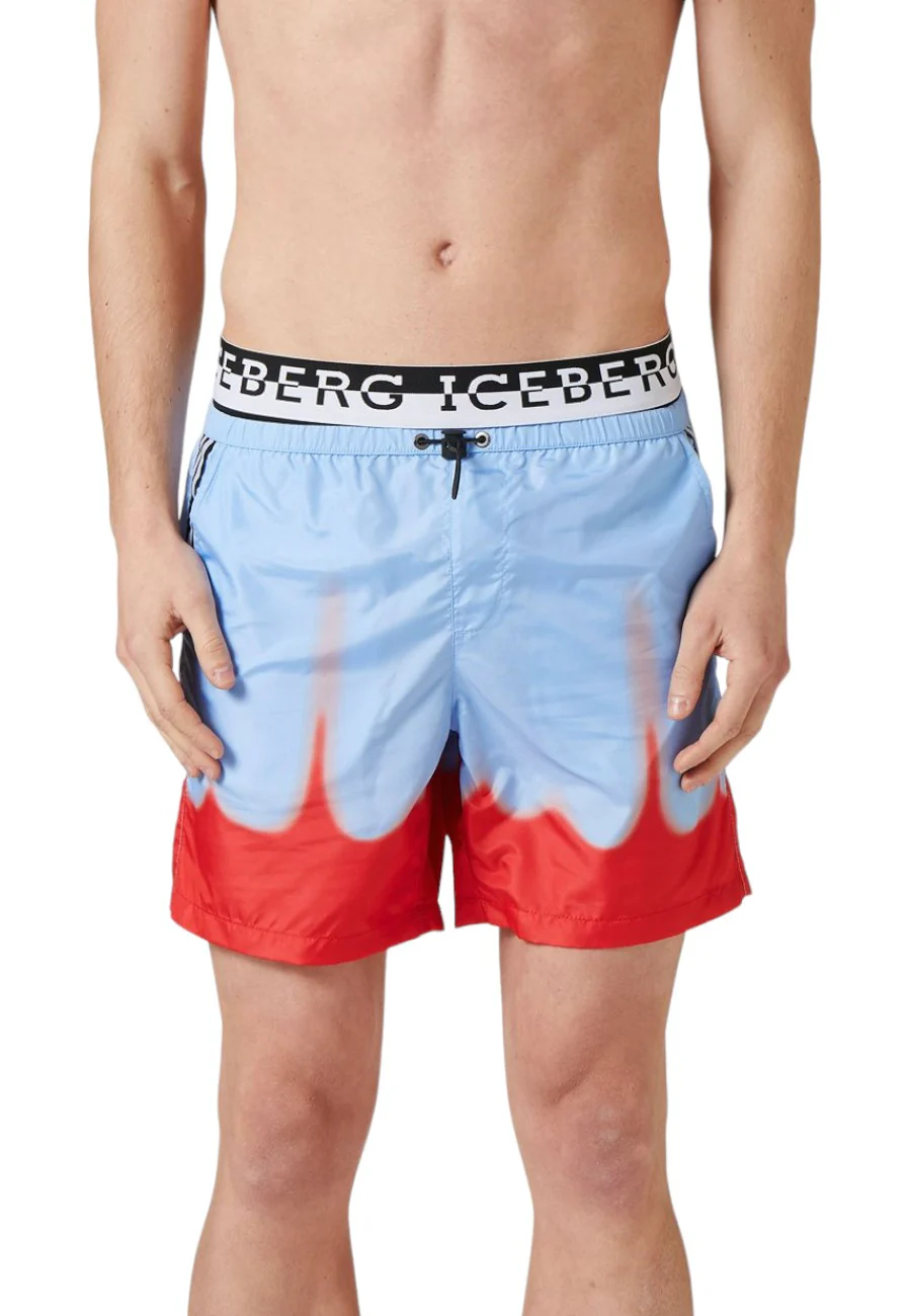 Costume da bagno con lunghezza a metà coscia, coulisse in vita che garantisce una vestibilità regolabile e banda elastica con logo Iceberg intarsiato con tecnica jacquard e colore a contrasto. Il capo è caratterizzato anche due taschini laterali con chiusura con zip e da una fantasia delavé. Un capo ideale per un look elegante e distintivo in piscina o in spiaggia.