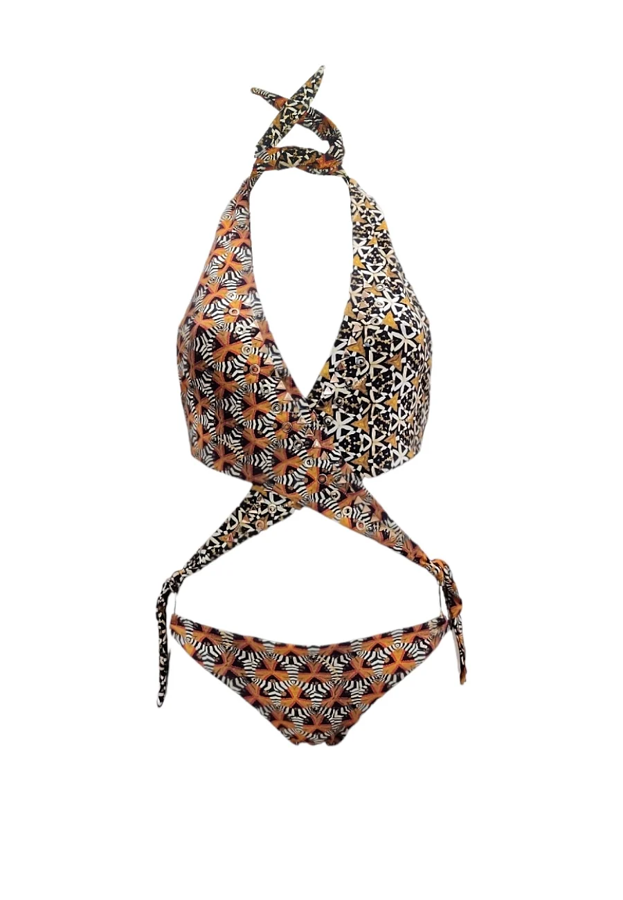 Trikini con specchietti e anelli. Vestibilitร multipla, puรฒ essere usato come bikini o trikini. out 88% poliammide 12% elastan inside 84%poliammide 16% elastan
