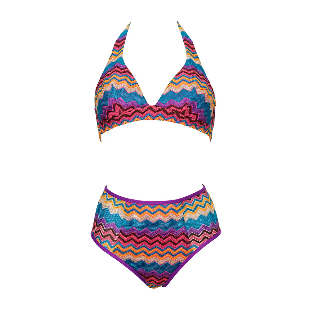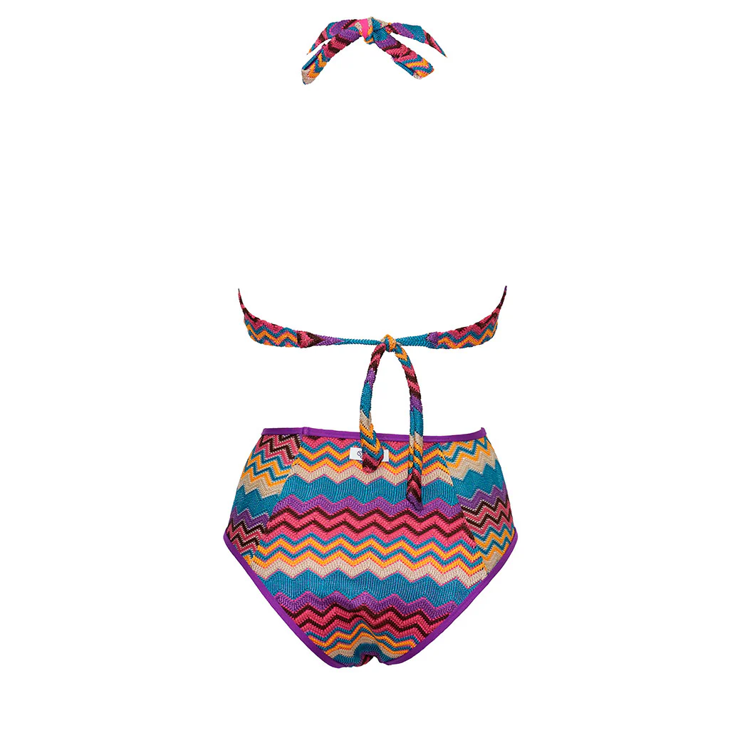 Alla base, uno slip alto 10 cm, che richiama lo stile anni โ80 con un taglio coprente sul retro. Il modello รจ comodo e pratico, pensato per chi cerca un bikini che unisca funzionalitร e un tocco di stile vintage.