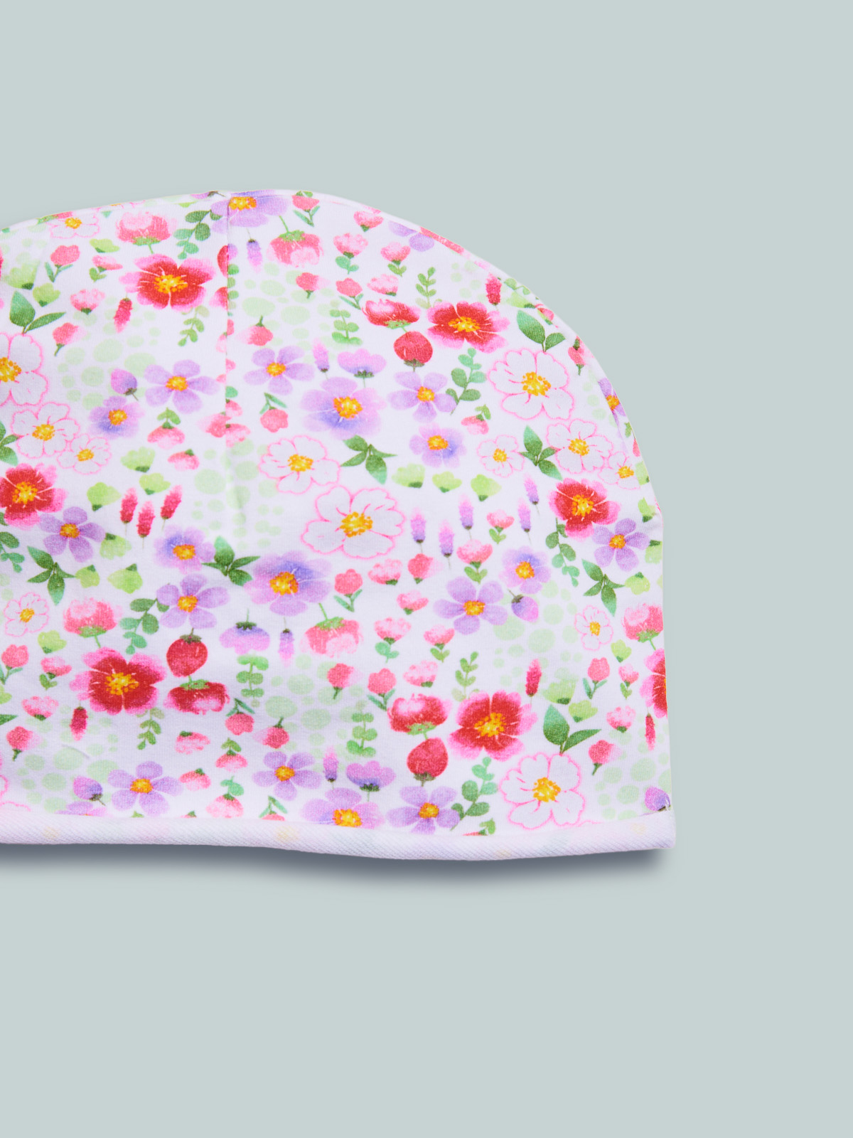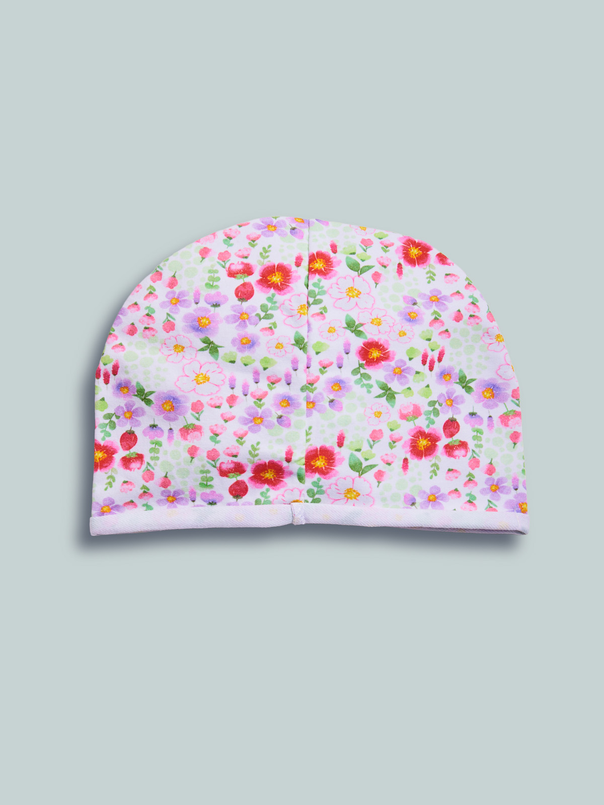 Cuffia in morbida felpina leggera fantasia fiori. Ideale da indossare nelle fresche giornate primaverili.