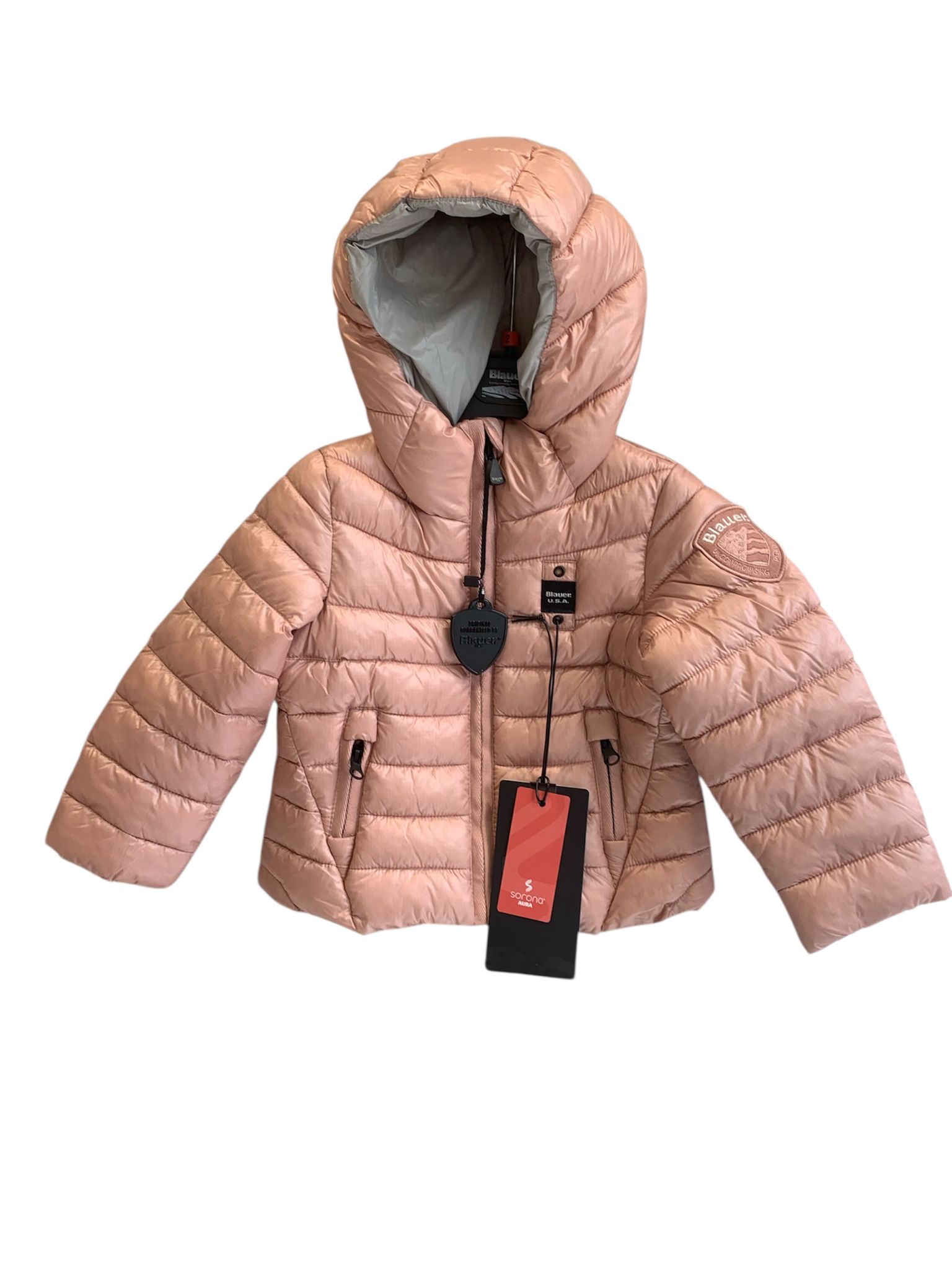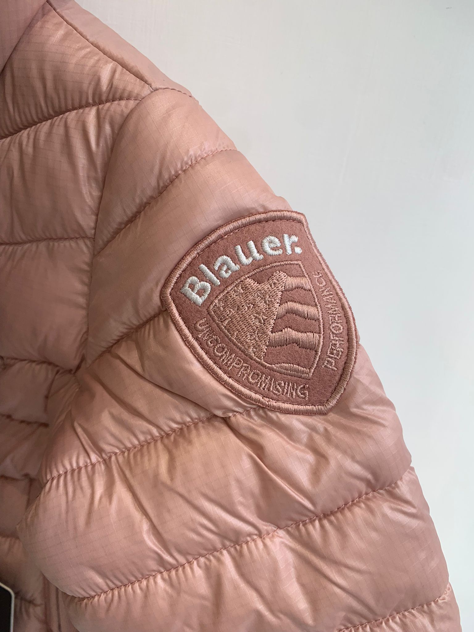 Winter jacket in water-repellent micro ripstop nylon. Sustainable padding, tapered silhouette and on-trend colors. โข Fixed hood with drawstring โข Made in micro ripstop nylon with subtle check pattern โข Lined in contrasting nylon โข Padded with Soronaยฎ Aura wadding โข Concealed zip closure โข Zip guard at neck โข Pockets with zip and zip guards โข Bottom drawstring โข Internal pockets with Velcro โข Glitter patch and logo loop
