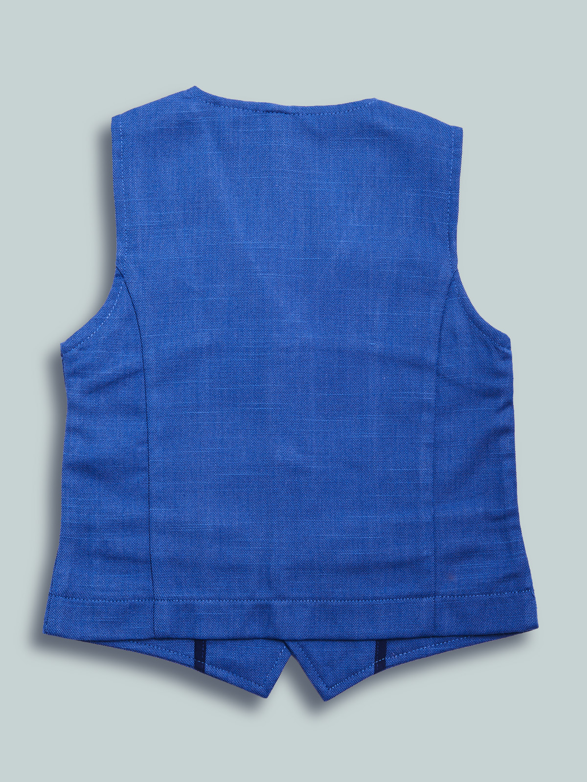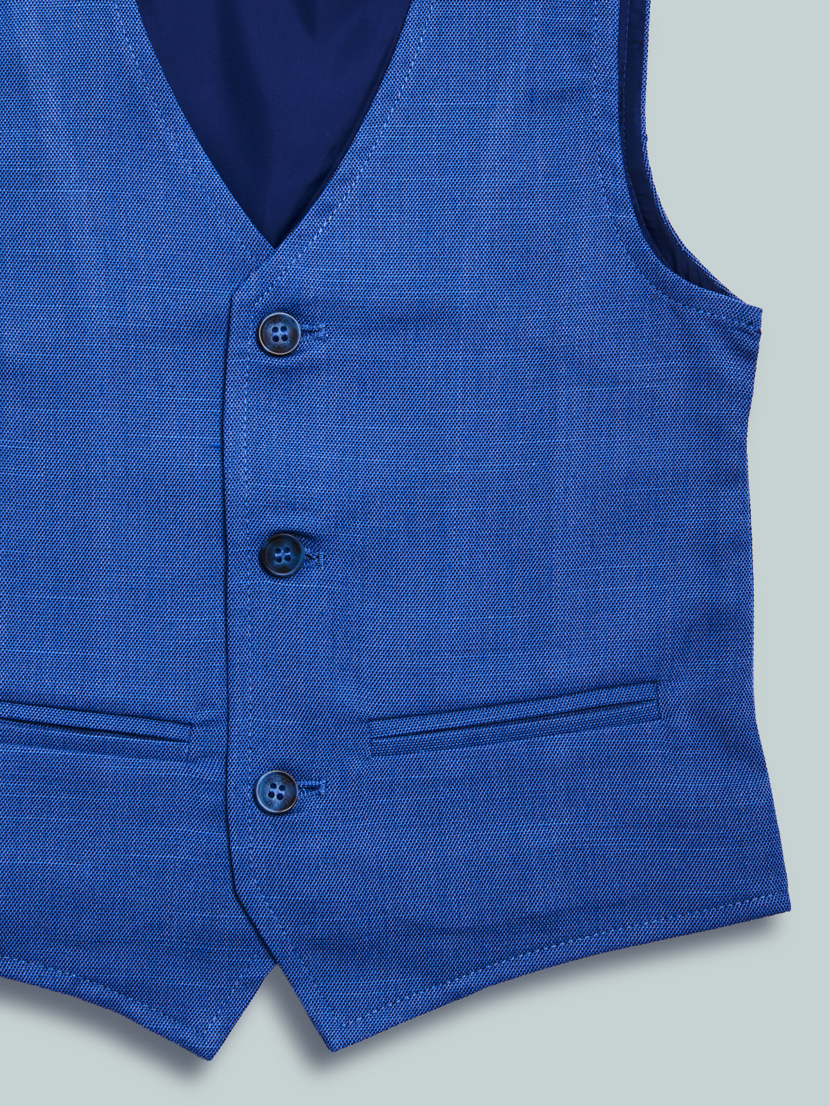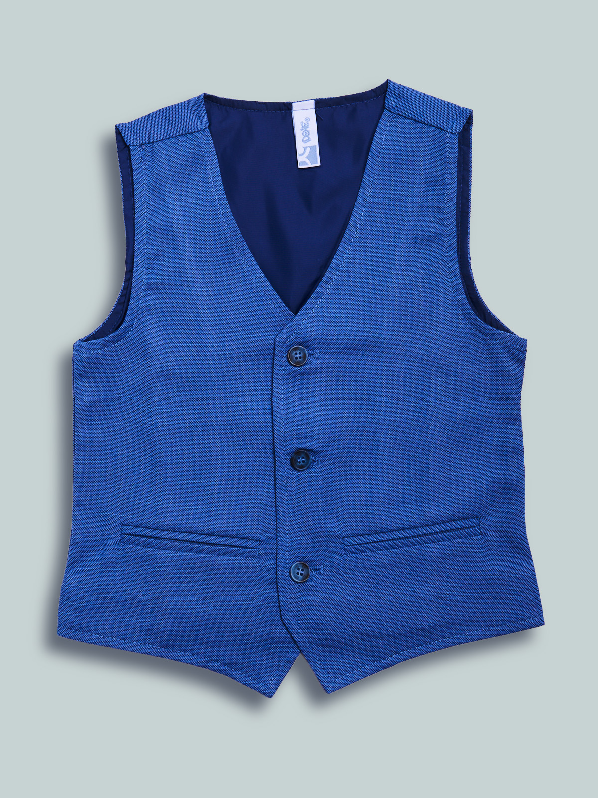 Gilet elegante in tessuto, aperto davanti con bottoni personalizzati e taschini a filetto. Il capo ideale per le occasioni speciali, perfetto indossato con giacca e pantaloni nello stesso tessuto.