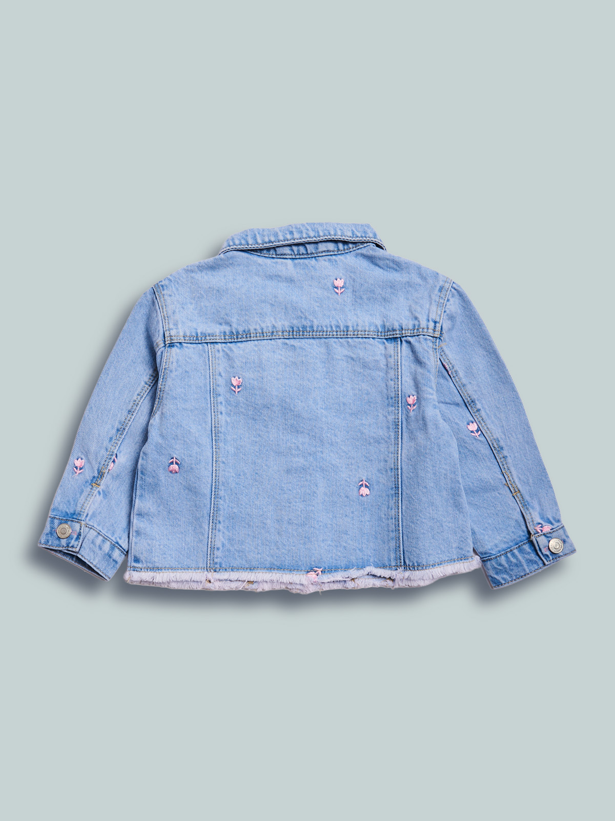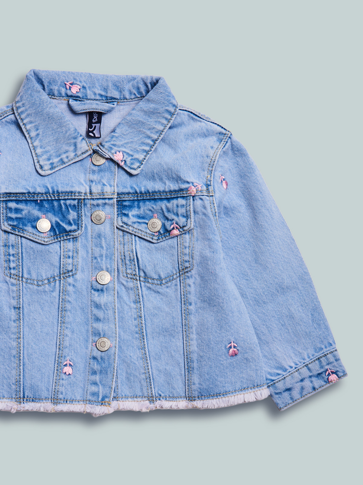 Giubbotto in morbido denim manica lunga con ricami tulipani. Tasche davanti per maggiore femminilitร . Pratico da indossare grazie all’apertura frontale con bottoni. Un capo con dettagli sfiziosi e ideale per il passaggio di stagione.