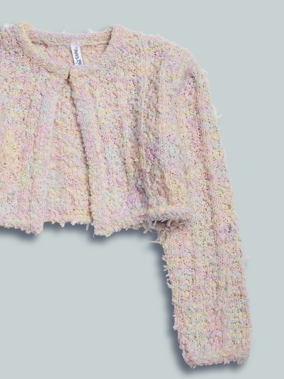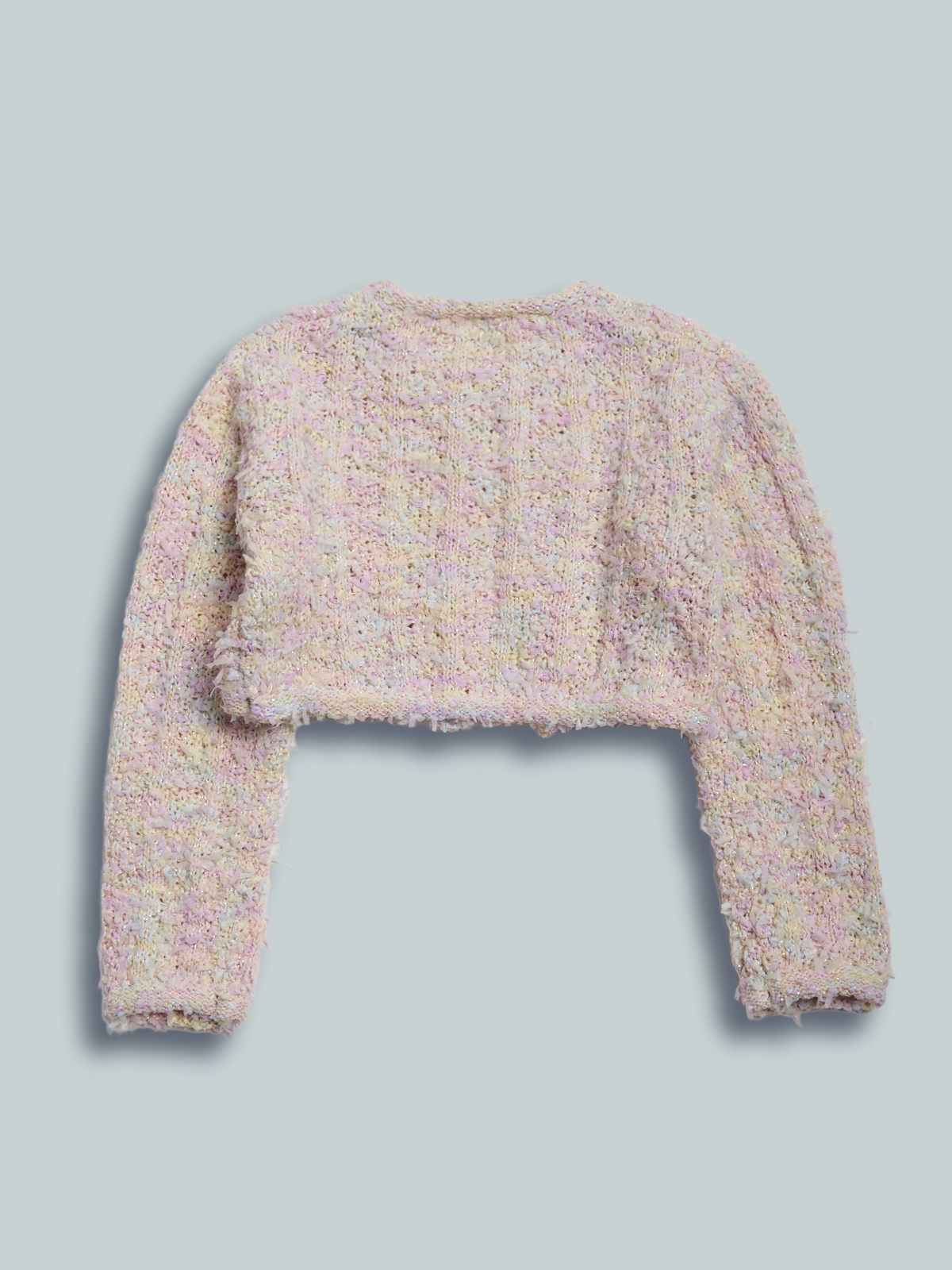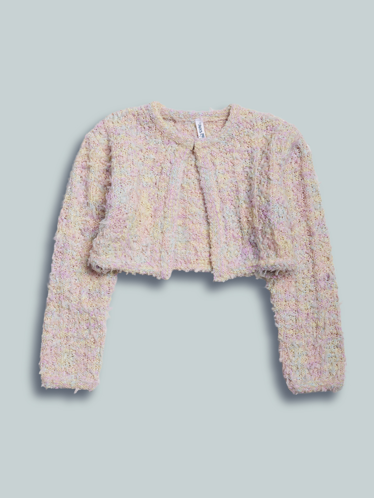 Golfino corto manica lunga in maglia strutturata, apertura anteriore con gancetto. Un capo chic ma molto pratico e perfetto per valorizzare gli abiti della cerimonia.