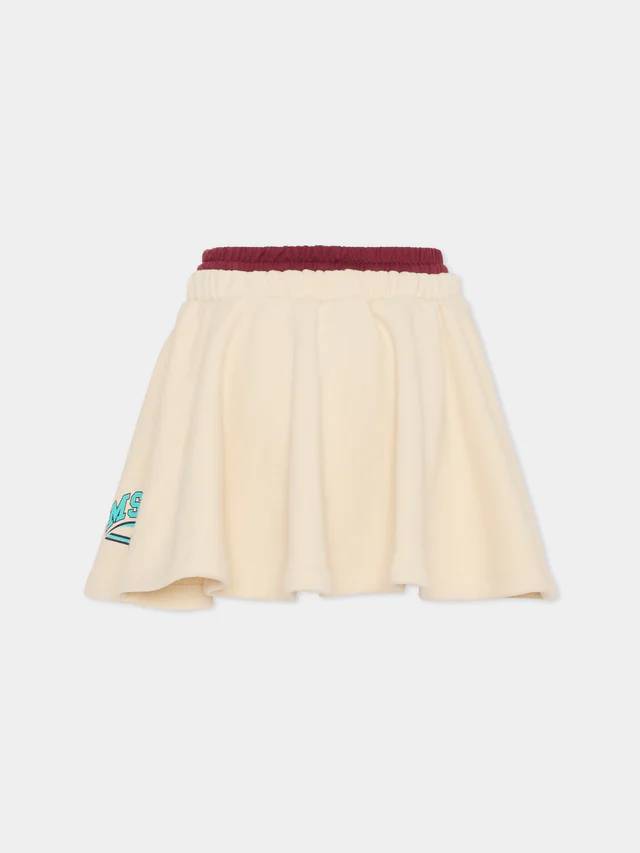 Gonna in felpina per bambine e ragazze colore beige con elastico in vita bordeaux e logo sul lato.