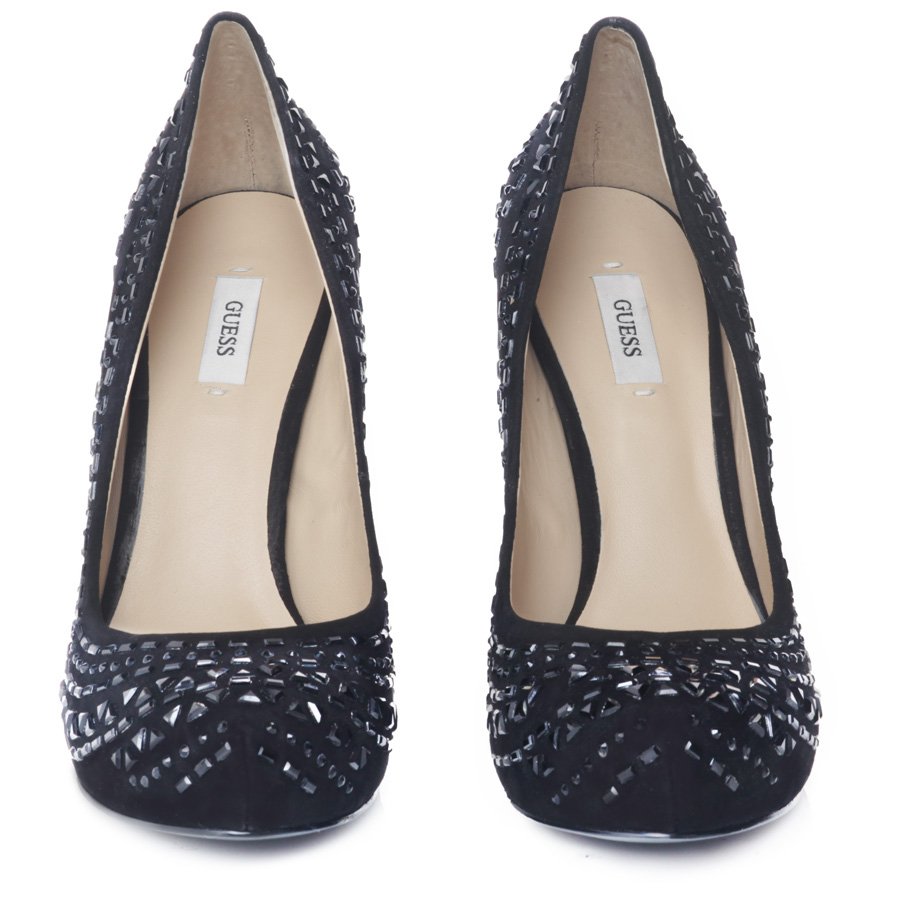 Guess – Décolleté Nere in Camoscio con Strass e Tacco Alto