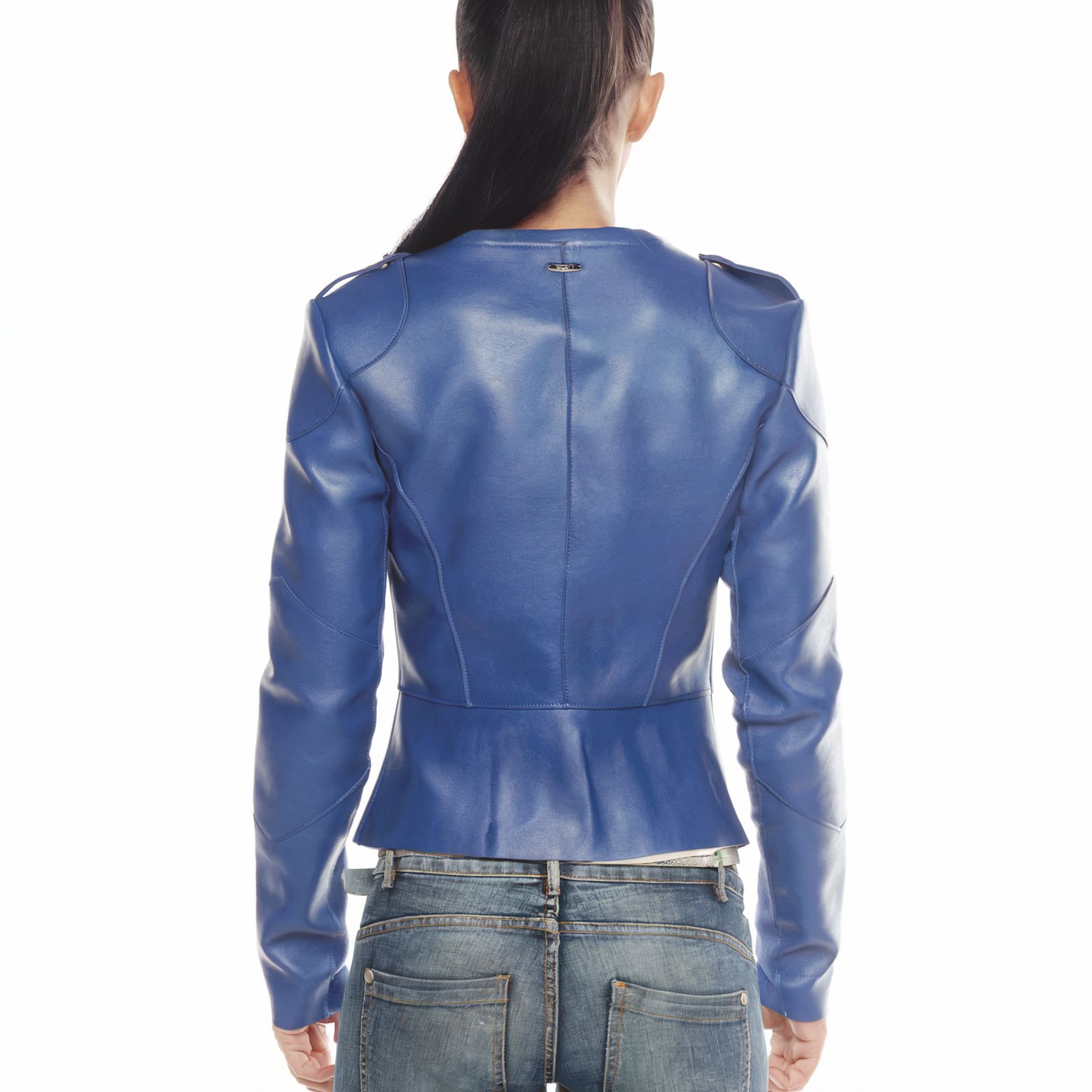 Giacca Biker Donna Guess – Modello Samantha in Pelle Blu