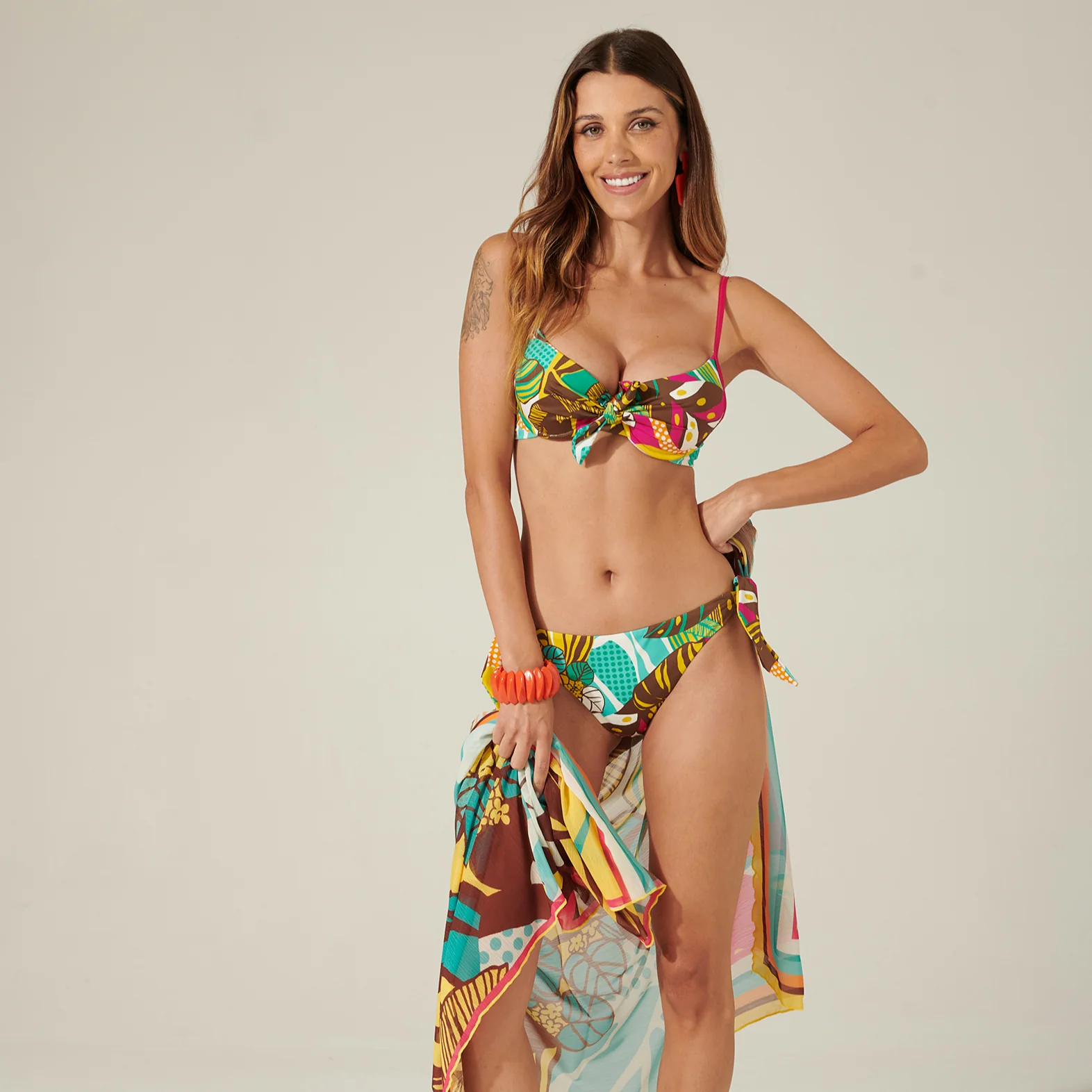 Coppa push-up con leggera imbotitura e fiocco centro seno Spallina regolabile e chiusura con gancio sul retro. Slip fiocco classico, coprente sul retro Realizzato in poliammide, miglior tessuto in commercio per i costumi da bagno. 80% Poliammide – 20% Elastan 100% Made in Italy