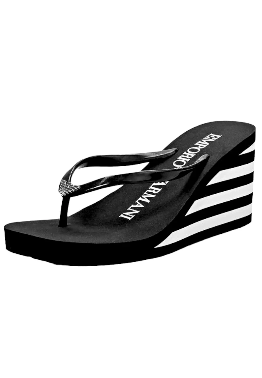 Infradito Emporio Armani con zeppa 8cm e logo in metallo.