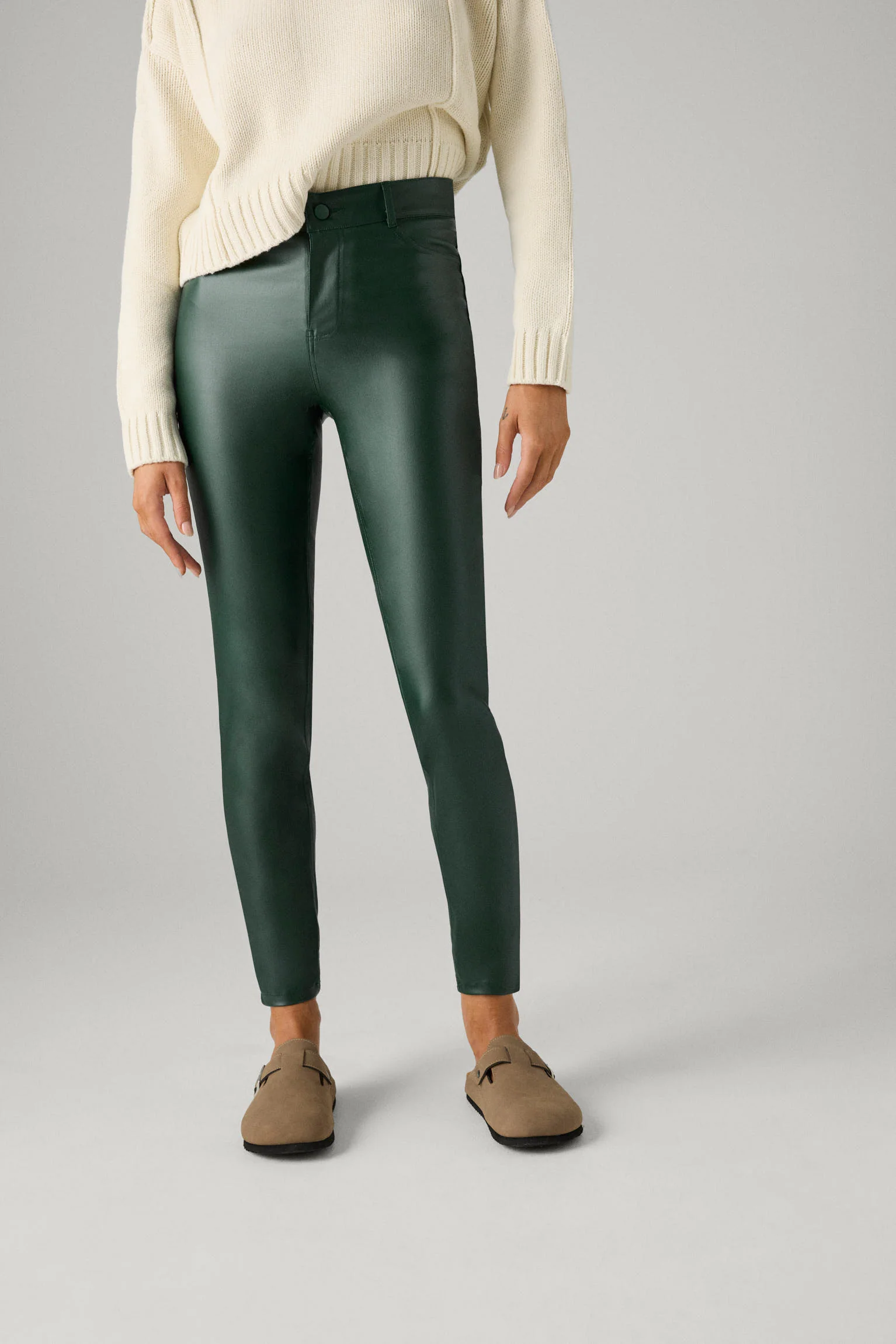 Aggiorna il tuo stile con i nostri leggings in denim gommato da donna. Questi leggings offrono un tocco moderno al classico look denim, grazie al loro tessuto gommato che fornisce una finitura lucida e accattivante. Realizzati con materiali di alta qualitร , offrono una vestibilitร aderente ed elastica che garantisce comfort e libertร di movimento. Il loro design versatile ti permette di indossarli in diverse occasioni, sia per una giornata casual in cittร che per una serata fuori. Osate distinguervi con stile con i nostri leggings in denim in tessuto gommato!