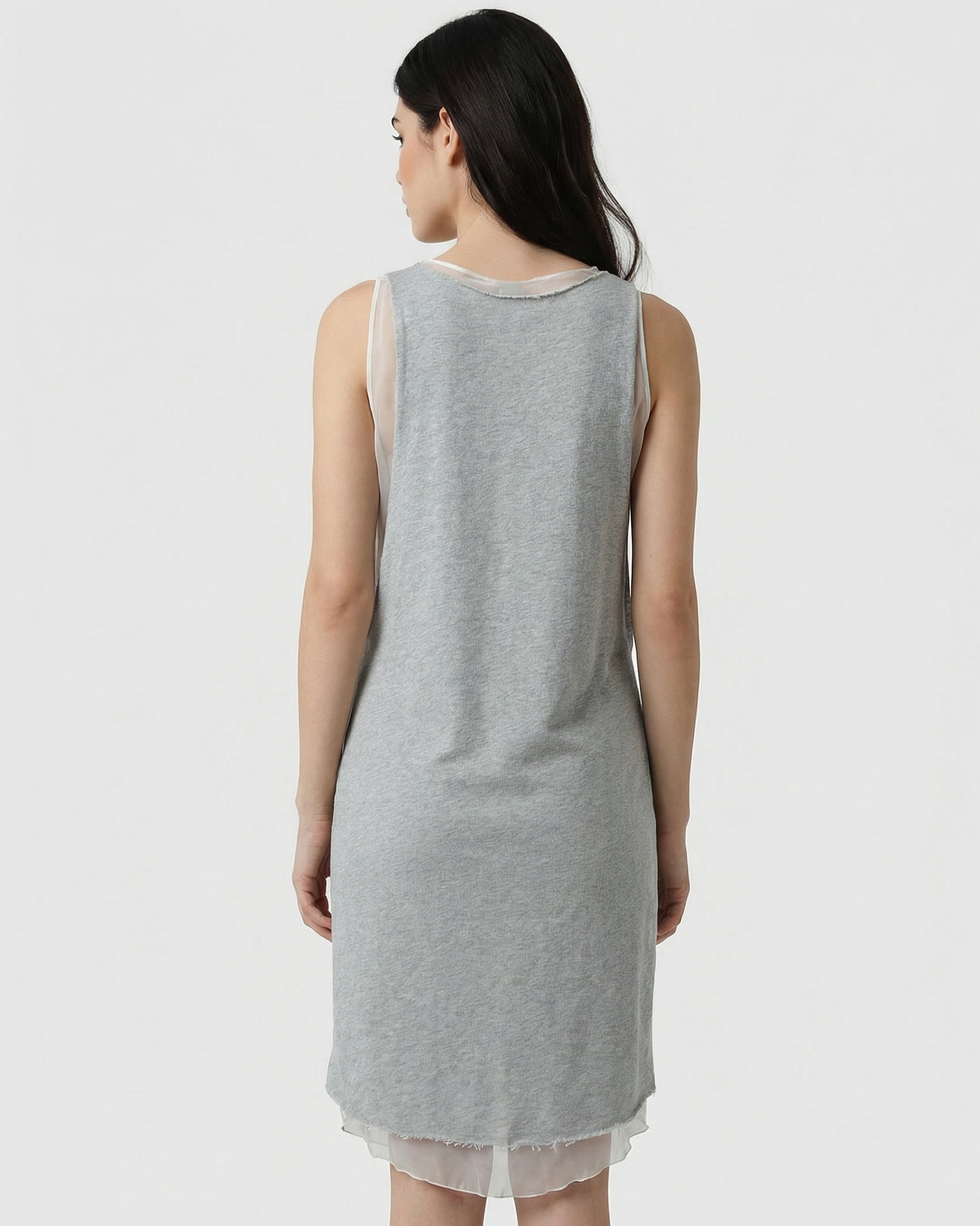 Raffinato e confortevole, l’abito JIJIL grigio รจ un mix perfetto di materiali nobili come il cotone e la seta. Questo modello senza maniche si distingue per il sottile inserto in seta color panna e un’esclusiva applicazione frontale di pietre gioiello, ideale per un look quotidiano ricercato o un evento informale.
