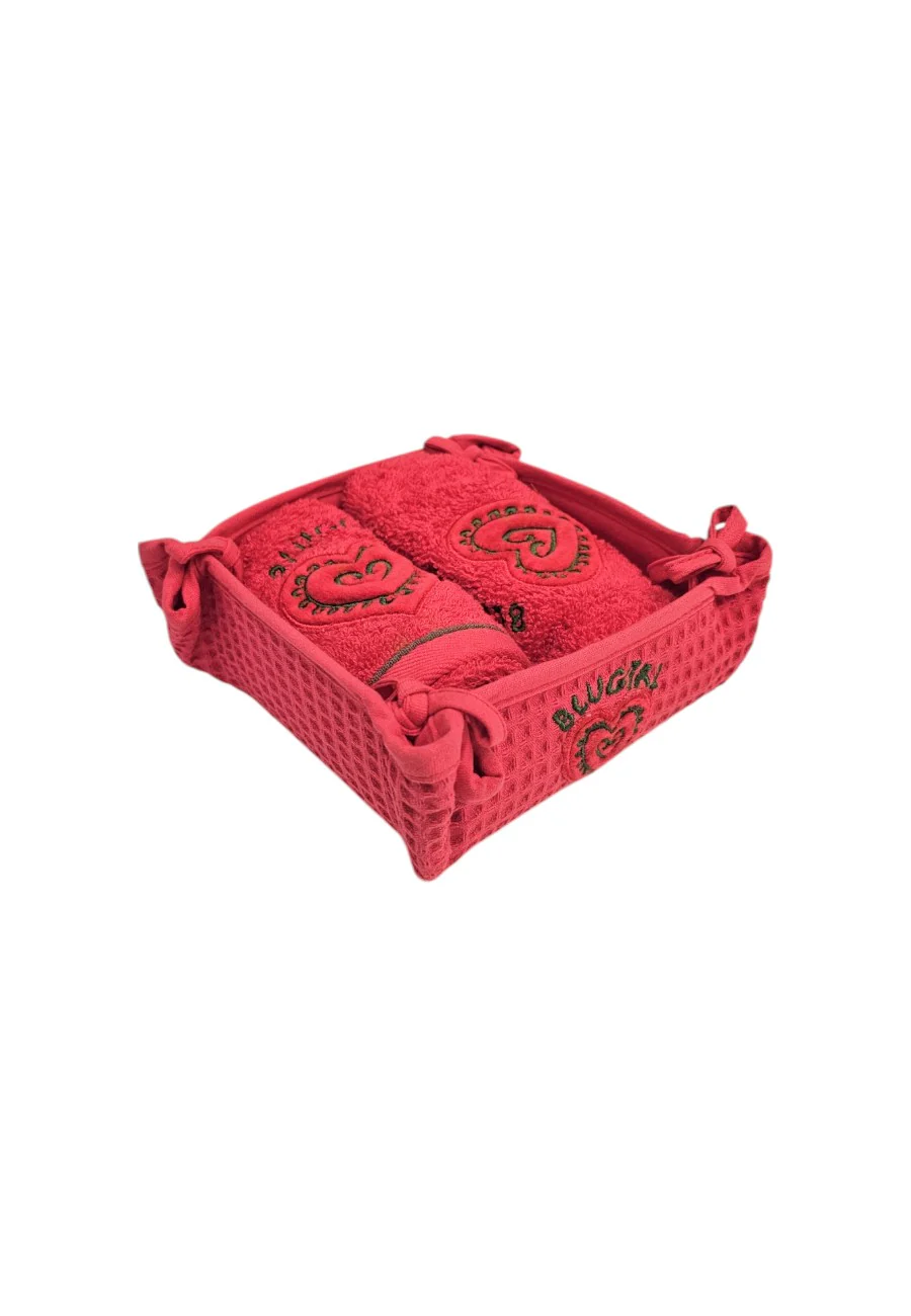 Cestino con 2 lavette ricamate