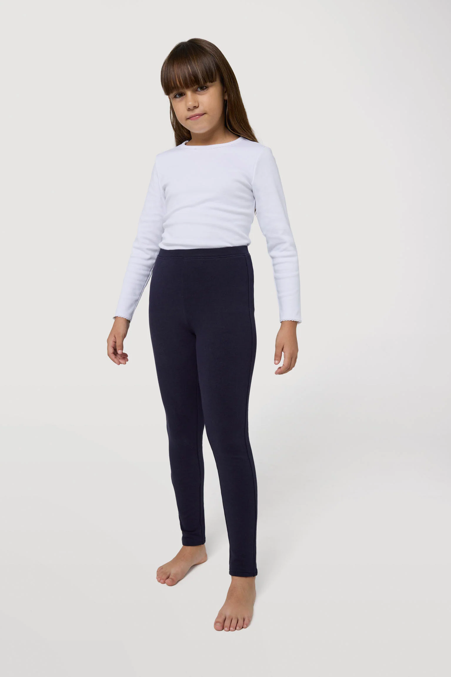 Leggings termici basic per bambina con interno in peluche. Realizzato con cotone naturale. Colore nero. 95% cotone, 5% elastan