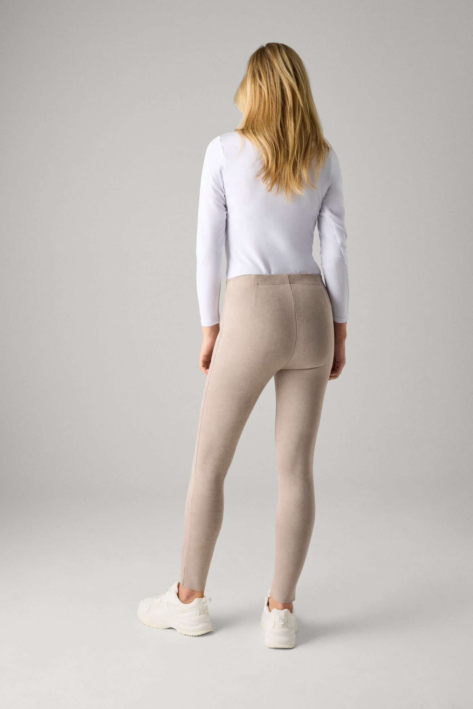 Leggings effetto scamosciato beige con dettaglio cucitura frontale