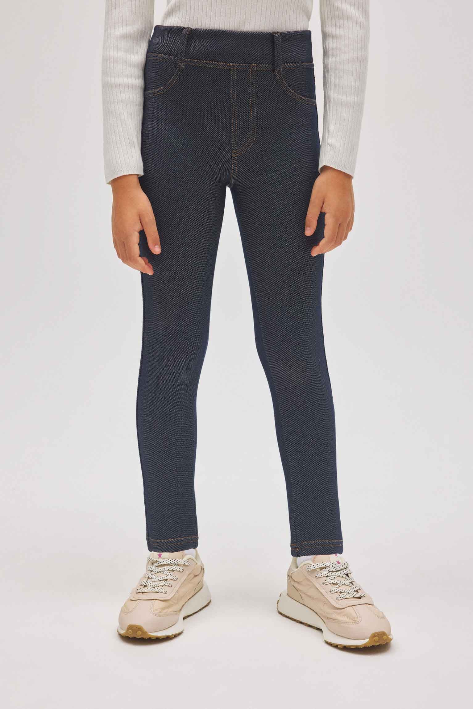 Leggings termici effetto denim blu navy da bambina