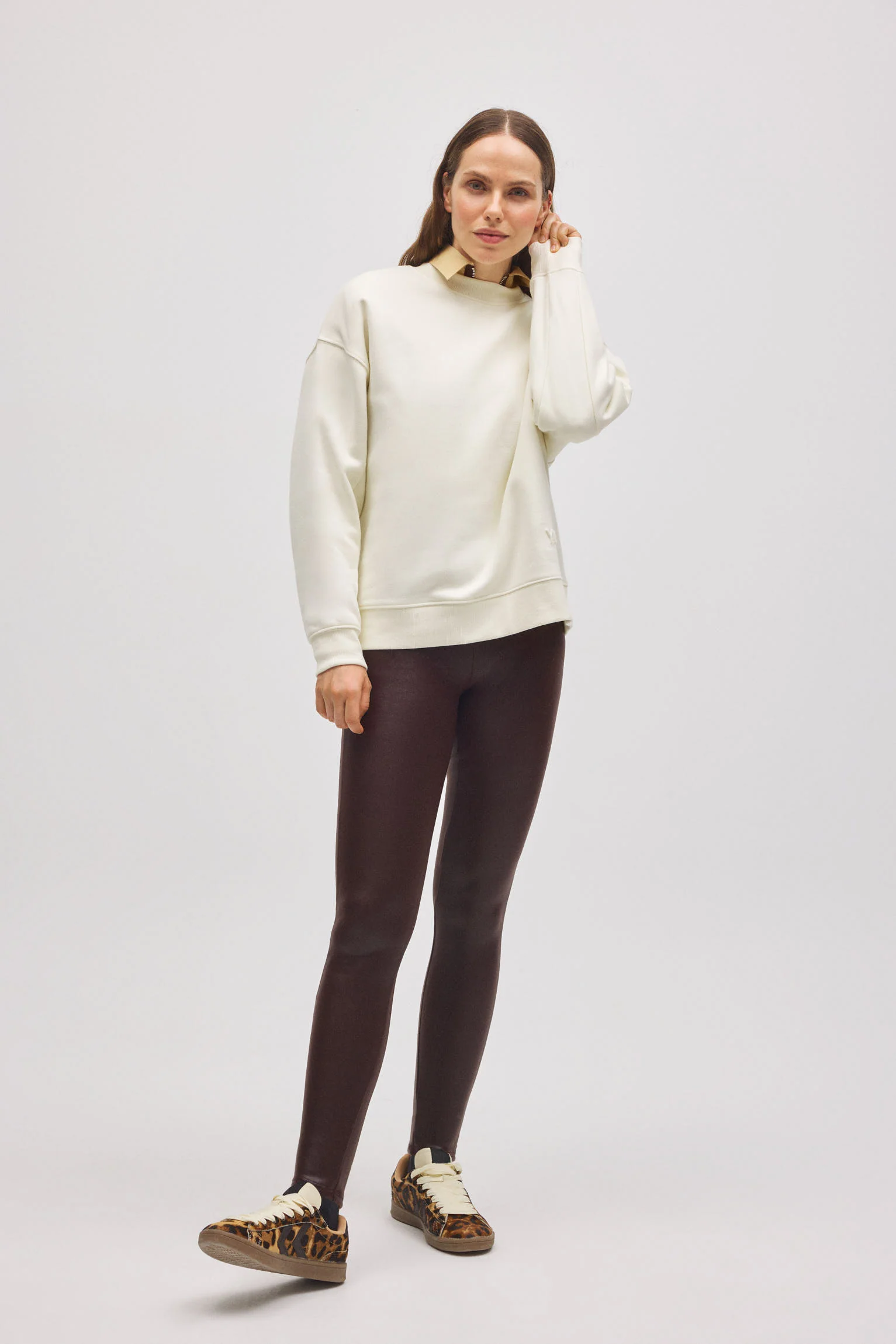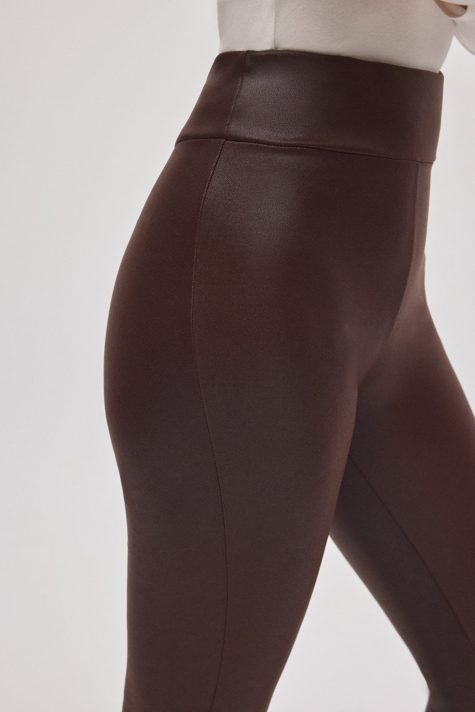 Leggings termici effetto pelle con ampia fascia elastica a vita alta e finitura effetto pelle. Un capo versatile ideale per i climi freddi.