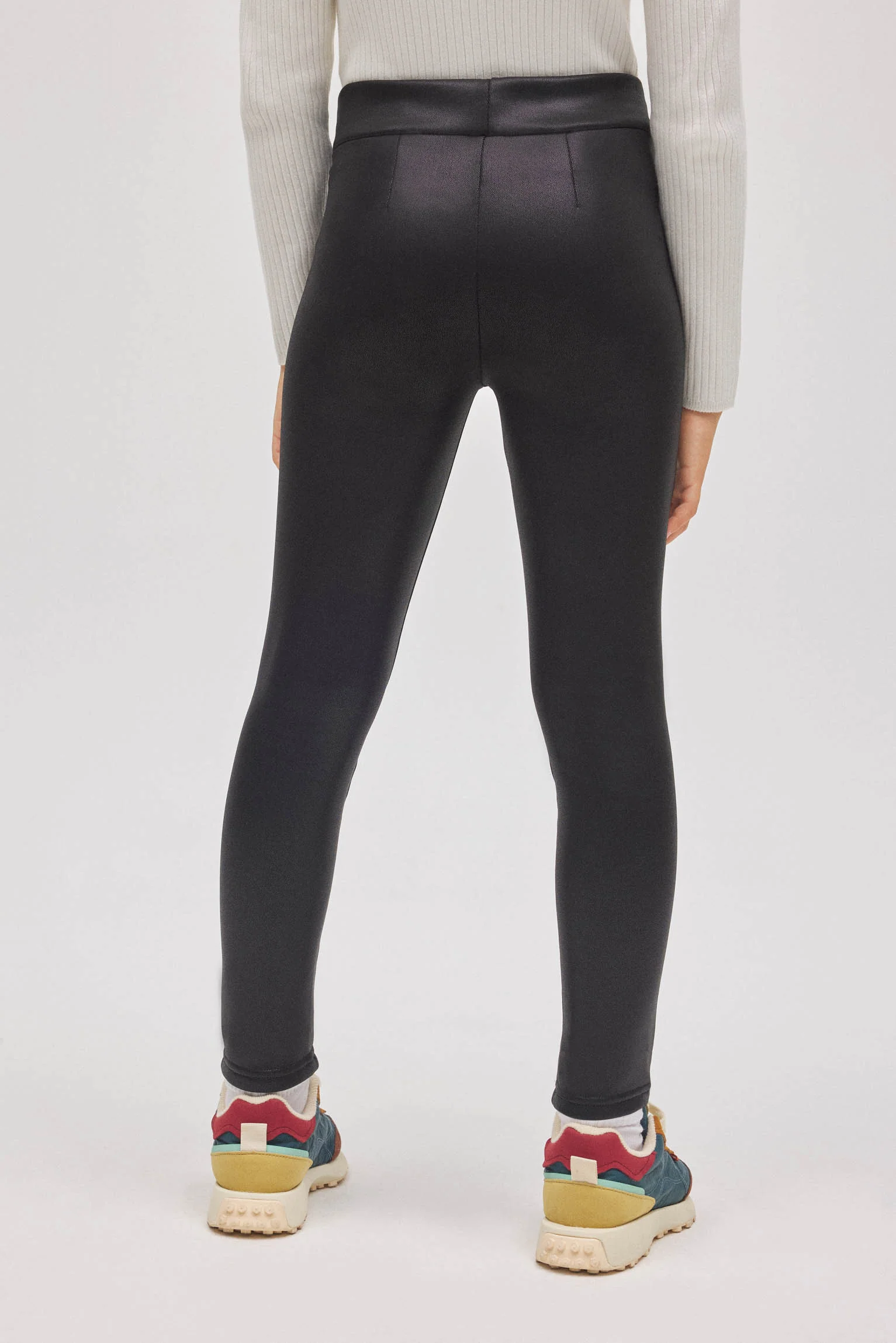 Leggings termici effetto pelle con ampia fascia elastica a vita alta e finitura effetto pelle. Un capo versatile ideale per i climi freddi.