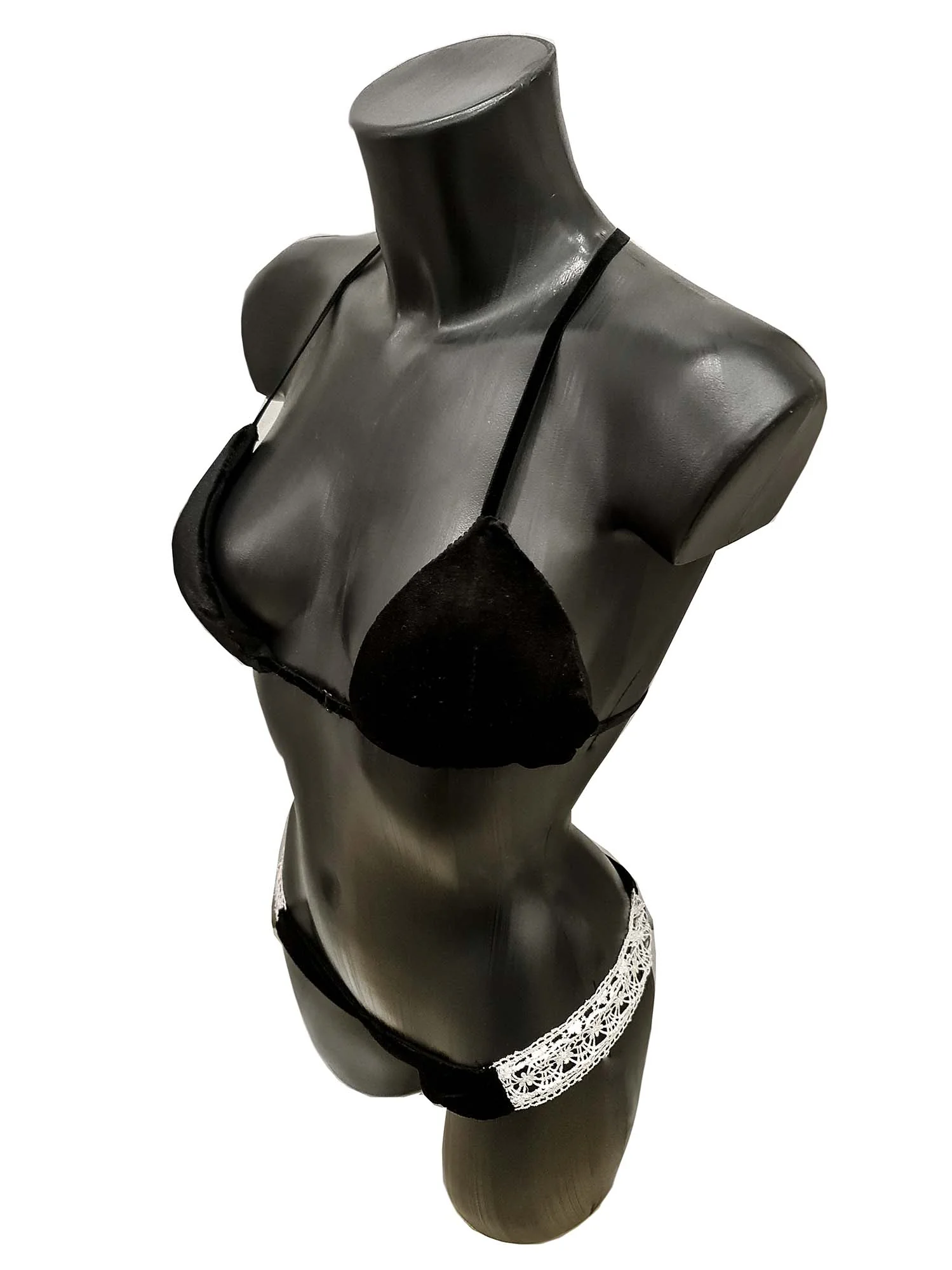 Prezioso, essenziale. Raffinatissimo, il TRIANGL BRA MACRAME’ รจ un pezzo immancabile, un must versatile che si presta alla creazione di molteplici outfit. Realizzato in vellutino nero elasticizzato รจ attraversato al centro della schiena, da un inserto in macramรจ color avorio dalla texture in rilievo e dettagli simmetrici. Allacciato davanti, disponibile in 4 versioni che trovi nelle relative sezioni del sito: senza coppa, con coppa anatomica, push up e super push up. Eccellente supporto ed effetto di rotonditร naturalissimo sul tuo seno. Componente metallico nichel free. Scegli la tua combinazione preferita e crea il tuo completino: perizoma in vellutino minimal o la culotte vita alta in morbidissimo satin? Il tuo corpo, la tua scelta perfetta.
