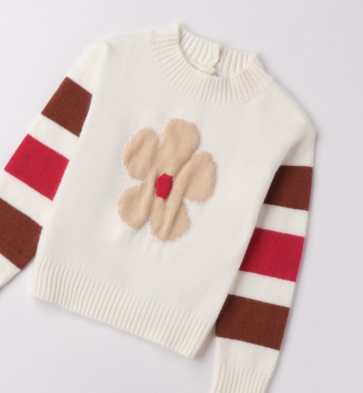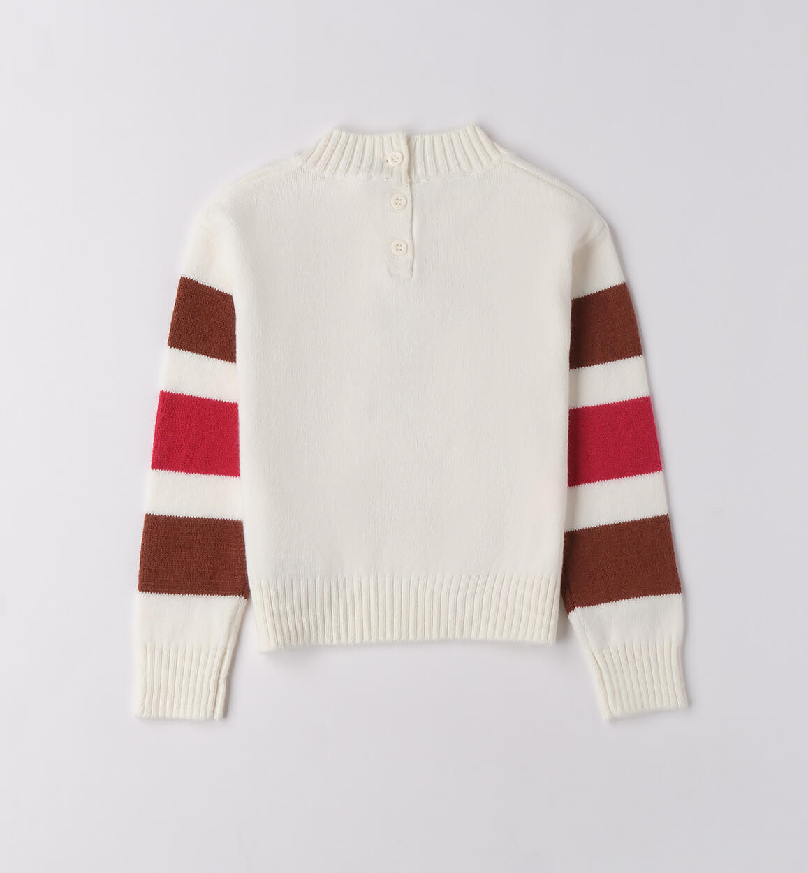 Maglione bambina Sarabanda 9 mesi – 8 anni realizzato in tricot con dettagli a contrasto Composizione Colore PANNA-0112: 44%Poliammide 29%Acrilica 26%Cotone 1%Elastan