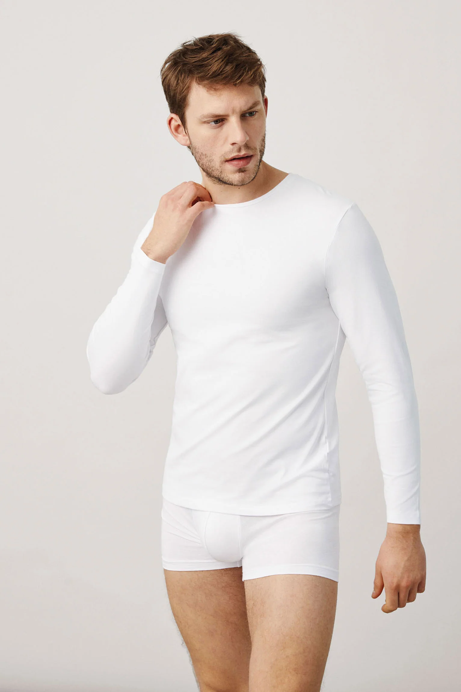 Maglia intima in cotone a maniche lunghe da uomo.