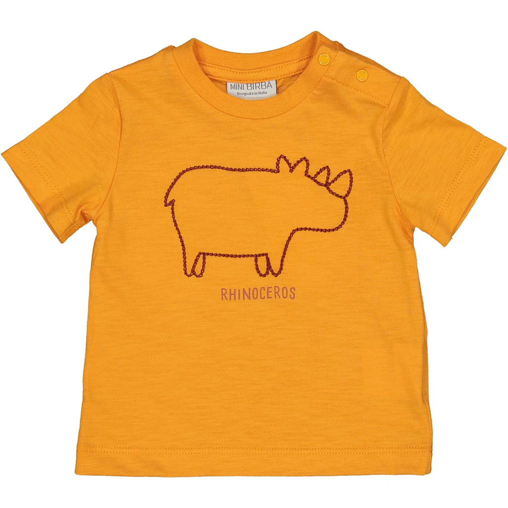 TSHIRT IN JERSEY DI COTONE MALFILE’ CON RICAMO RINOCERONTE SUL DAVANTI CON MOTIVO CATENELLA. BOTTONCINI AUTOMATICI SU SPALLA