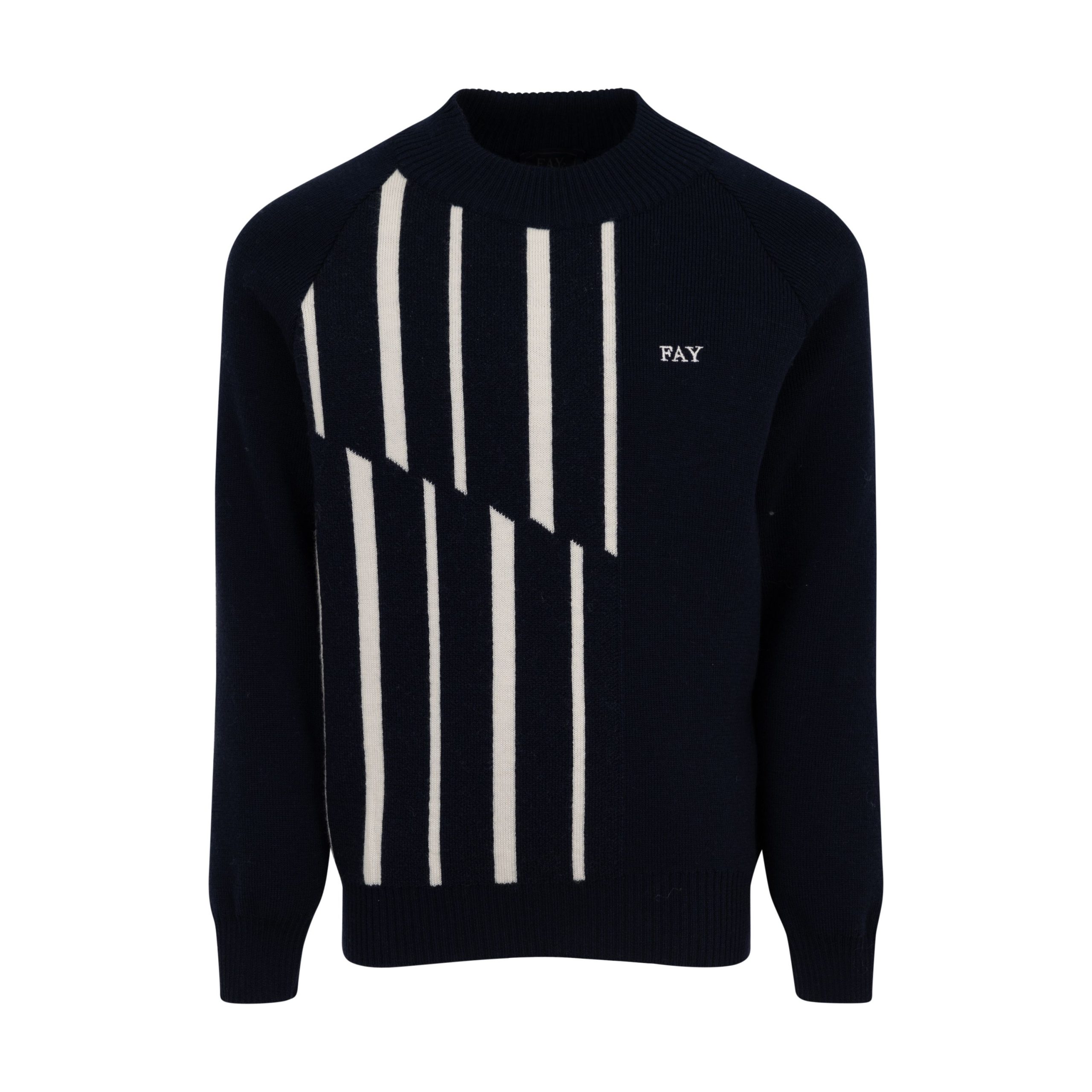 – Maglione Fay – Colore Blu – Stagione Autunno/Inverno – Vestibilitร Regolare – Composizione Lana – Cod. Articolo FX9P10-W0003-619AV