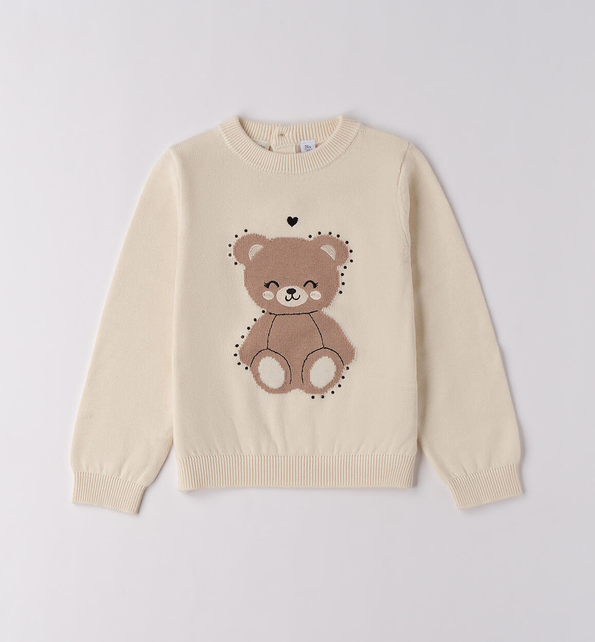 Maglione bambina Sarabanda 9 mesi – 8 anni realizzato in tricot 100% cotone con intarsio ricamo orso illuminato da strass Composizione Colore CREMA-0921: 100%Cotone