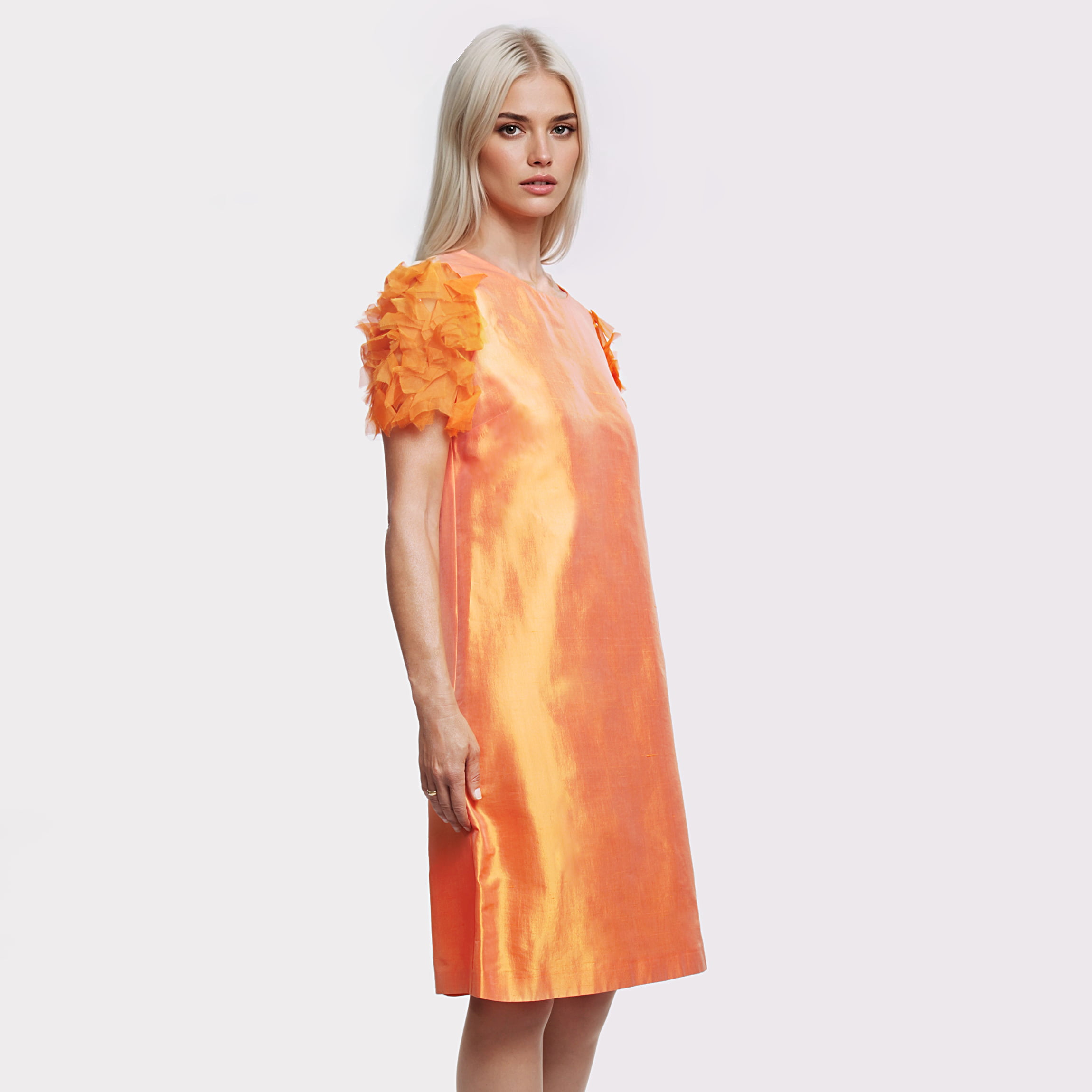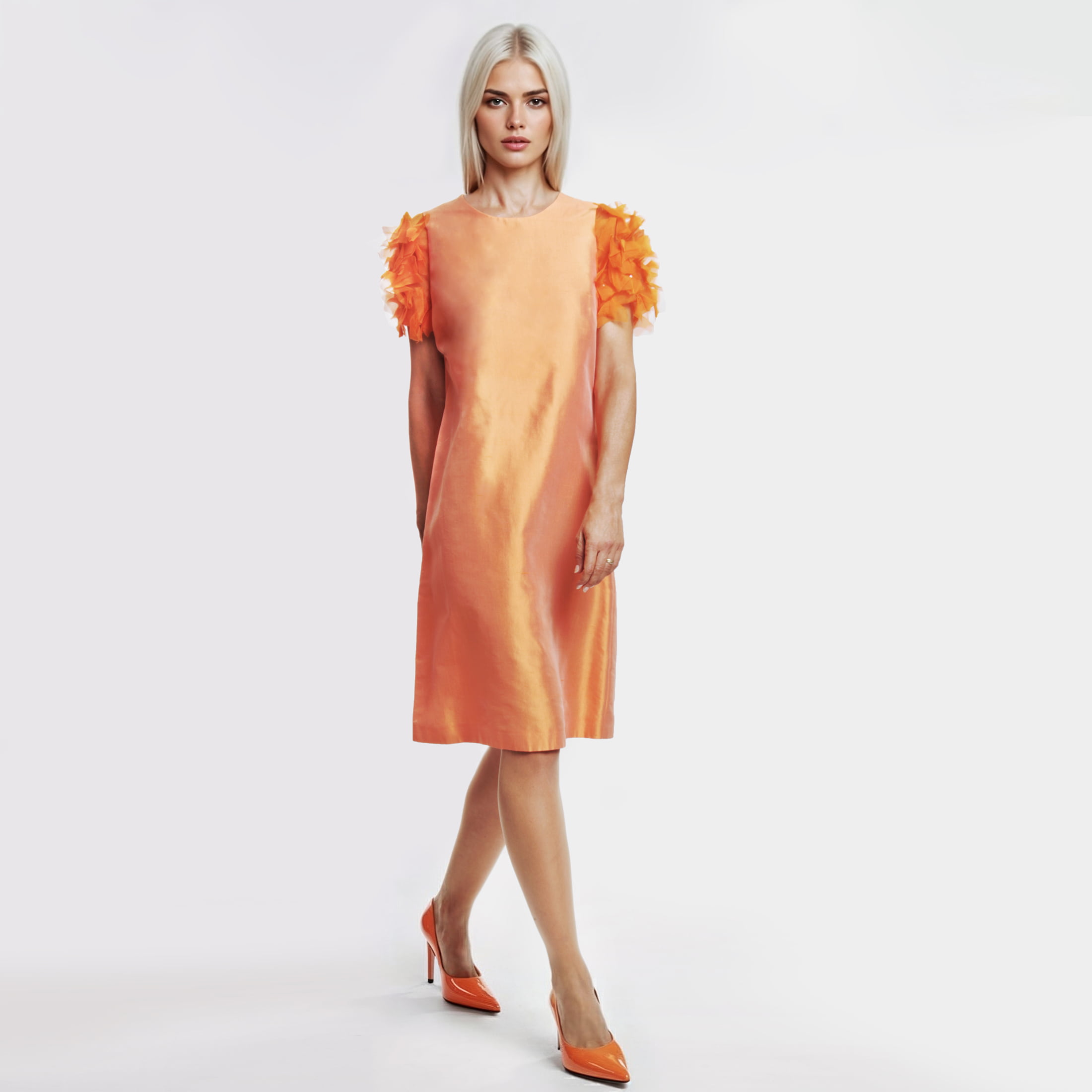 MAX MARA – Abito Seta Arancio con Maniche a Petalo