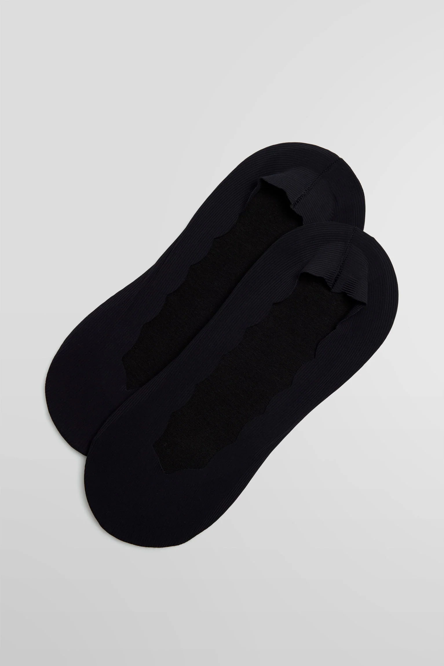 Mignoli invisibili in cotone da donna. Design liscio con fascia in silicone per una migliore aderenza al piede. Design semplice ed elegante con bordo ondulato. 95% cotone, 5% elastan