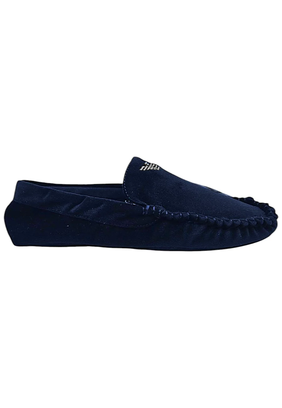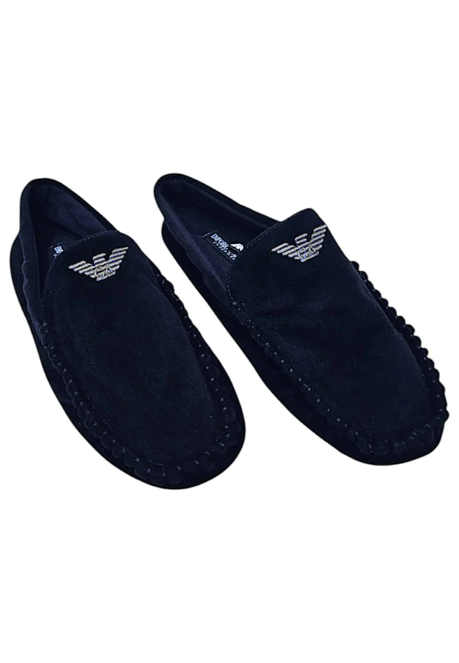 Pantofole Emporio Armani a mocassino con suola rigida e logo aquila a contrasto. 100% cotone , tomaia 100% poliestere , suola100% etilvinacetato, fodera 100% poliestere