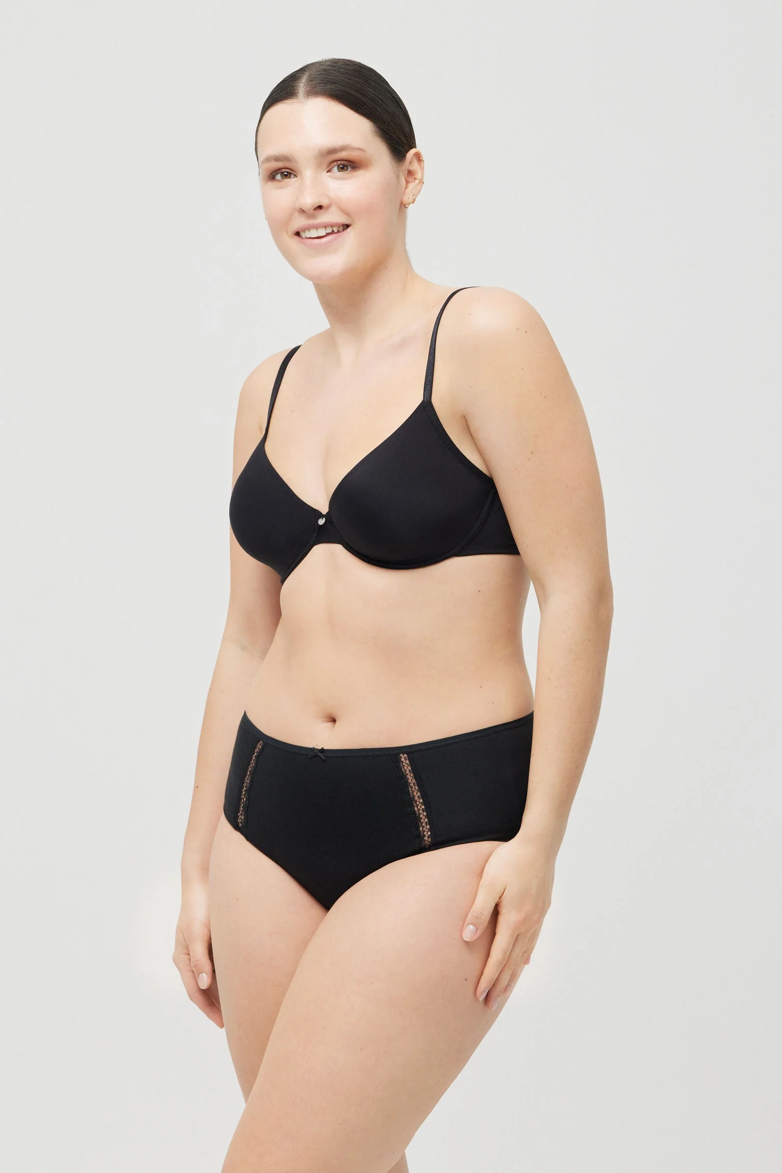 Collezione di biancheria intima. Slip ad alto controllo e cotone naturale che modellano perfettamente senza costringere. Cuciture piatte per un maggiore comfort. Definisci la tua silhouette nella vita quotidiana.