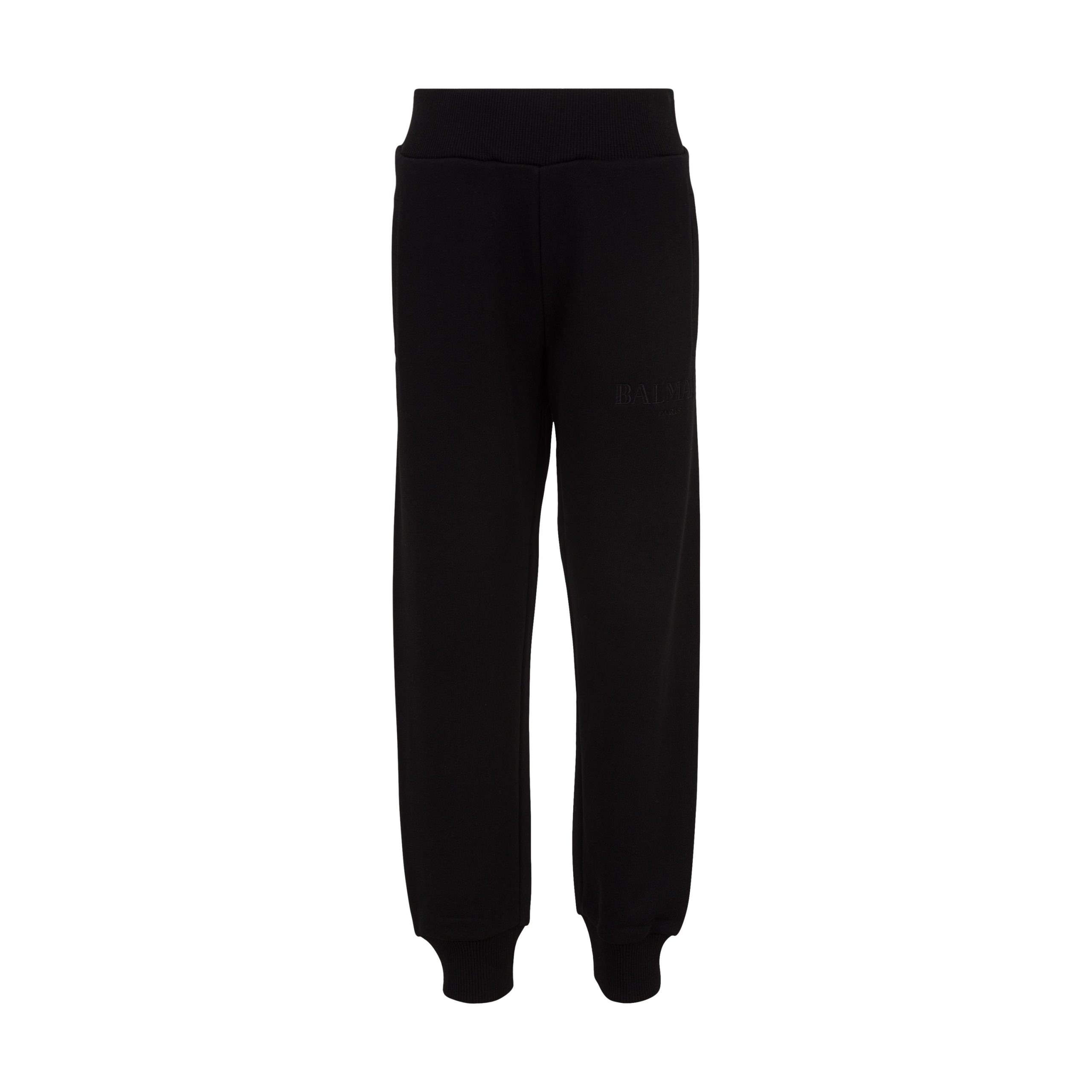 Pantaloni per bambino e ragazzo Balmain Kids neri. Realizzato in cotone 100%. Il prodotto presenta un colore nero, elastico in vita , tasche laterali, caviglie a coste.