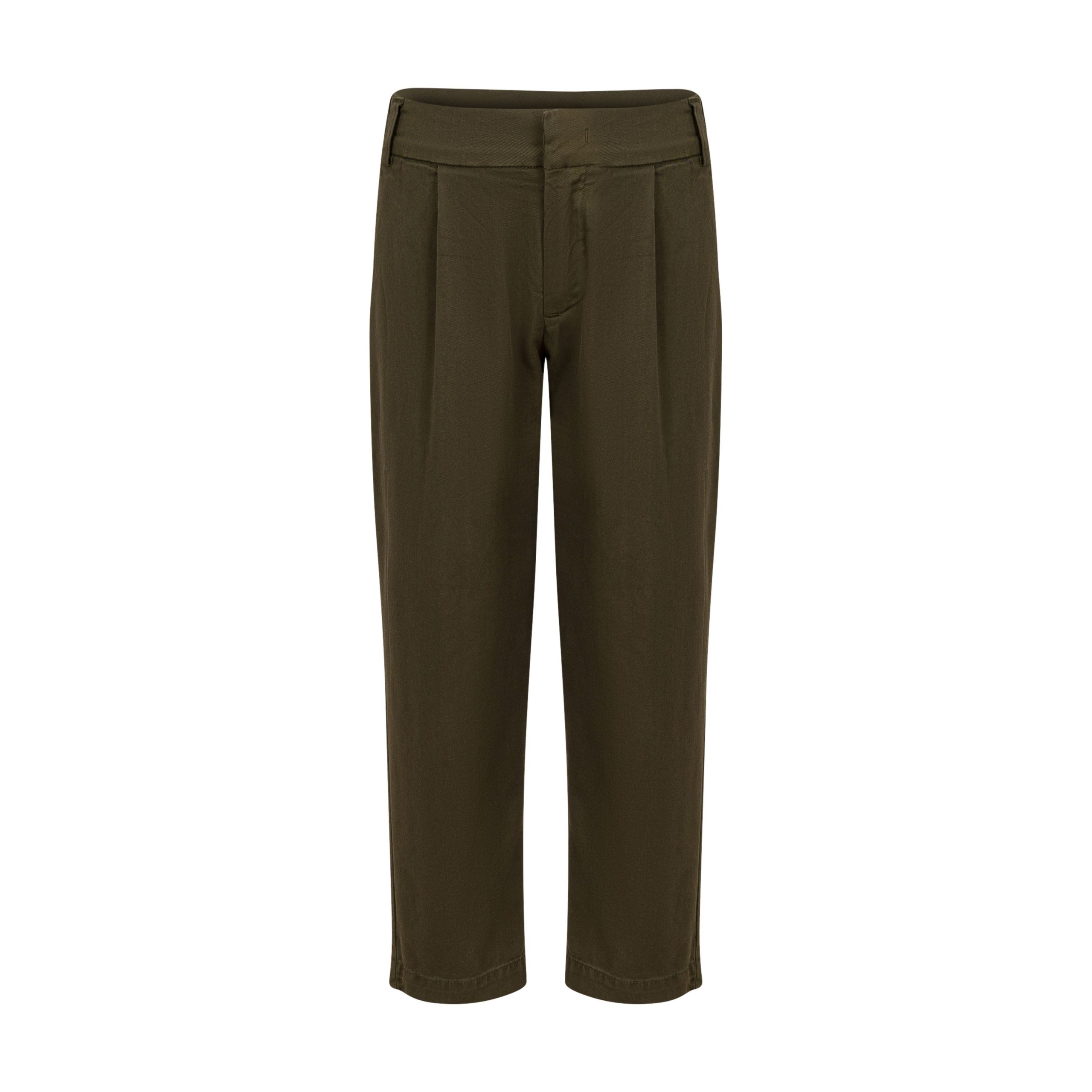 Pantaloni realizzati in cotone a tinta unita, chiusura con bottone e zip. Dotati di tasche posteriori con patta e bottone. Vita media, passanti in vita e orlo dritto.