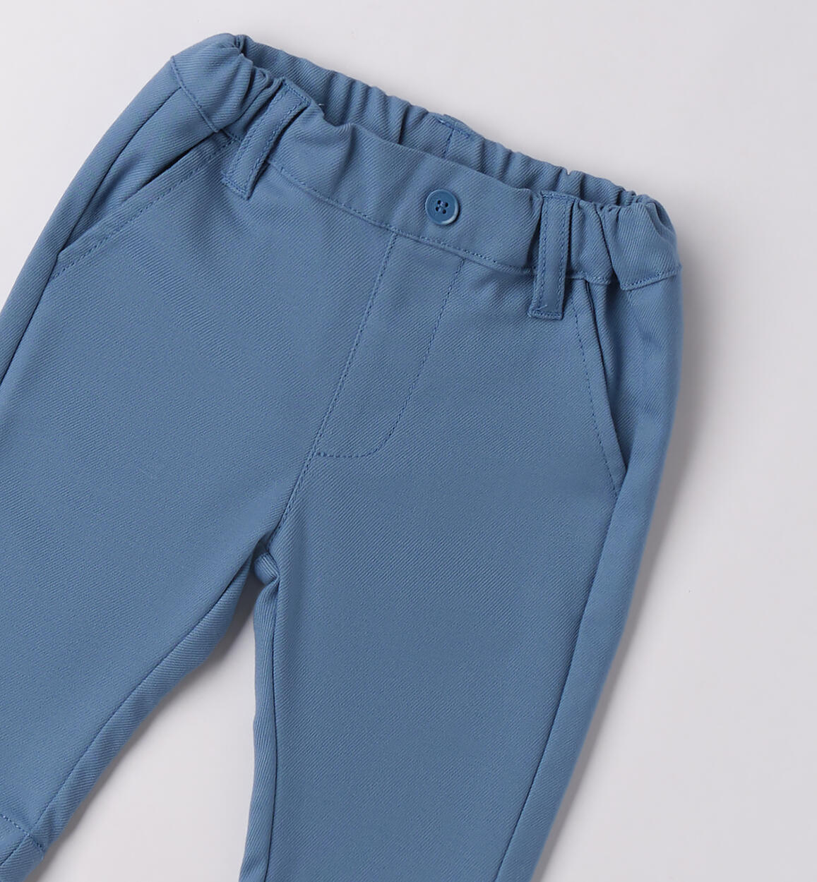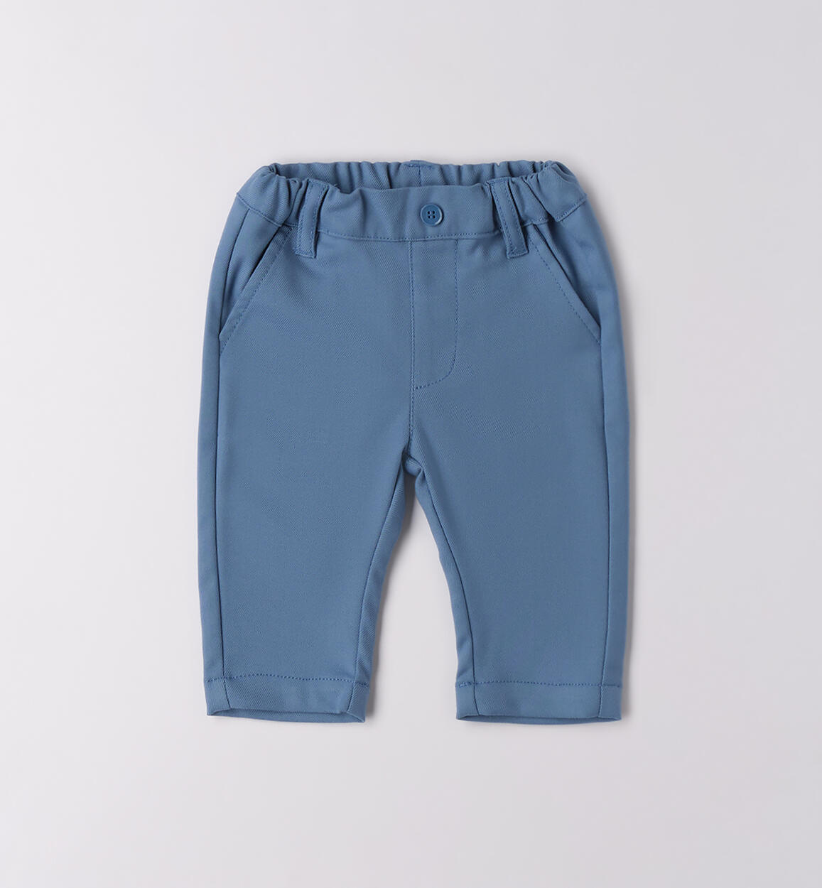 Pantalone per neonato Minibanda 1-24 mesi realizzato in twill manopesca. Il modello presenta vita regolabile con elastico asolato interno