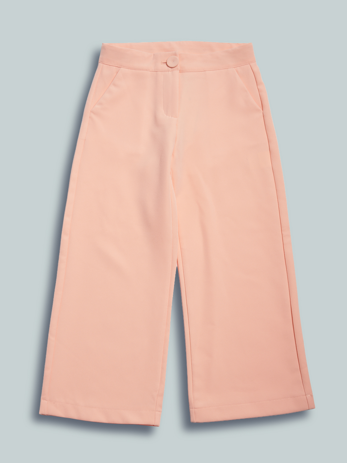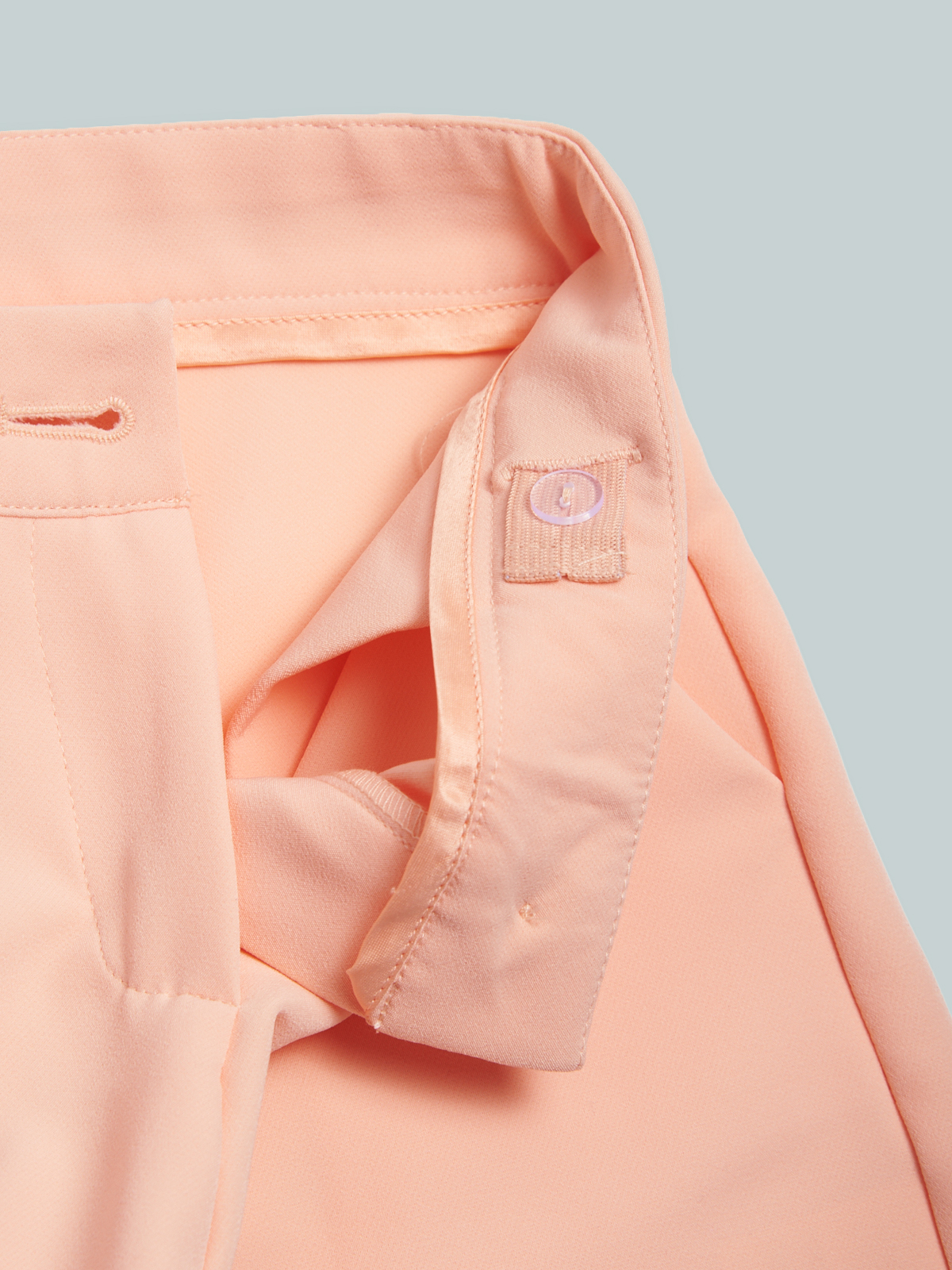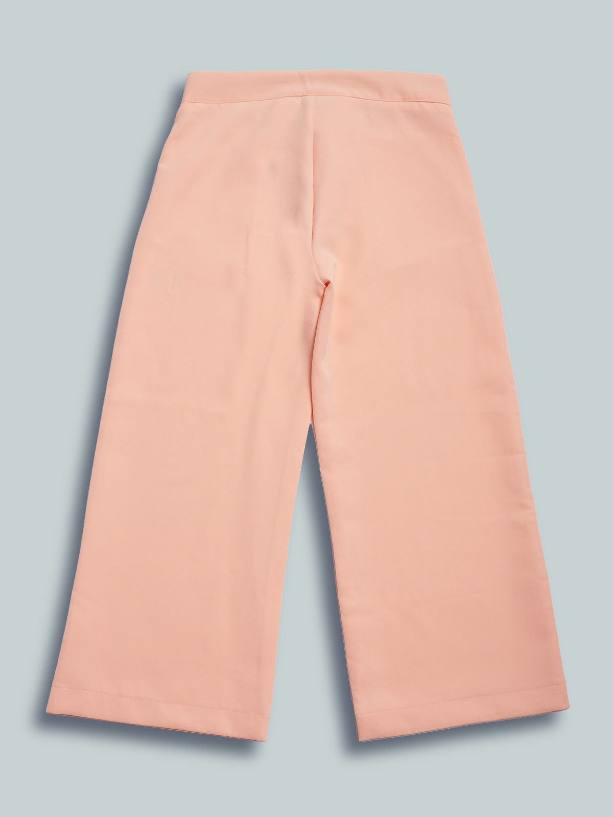 Pantaloni in morbido tessuto cady modello a palazzo con vita regolabile e apertura con zip e bottone. Un capo versatile dal lok bon ton.