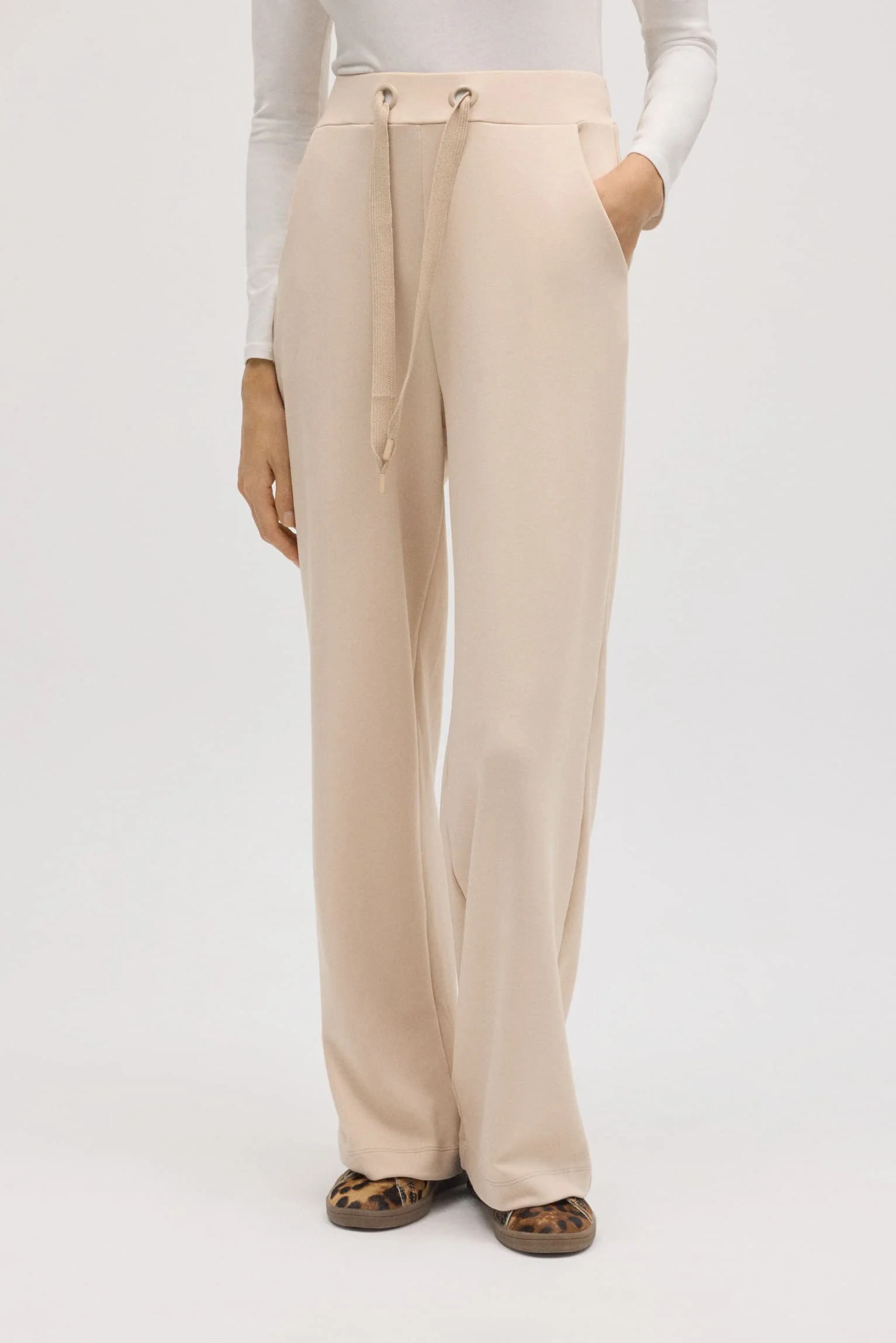 Pantaloni dritti fluidi color avorio