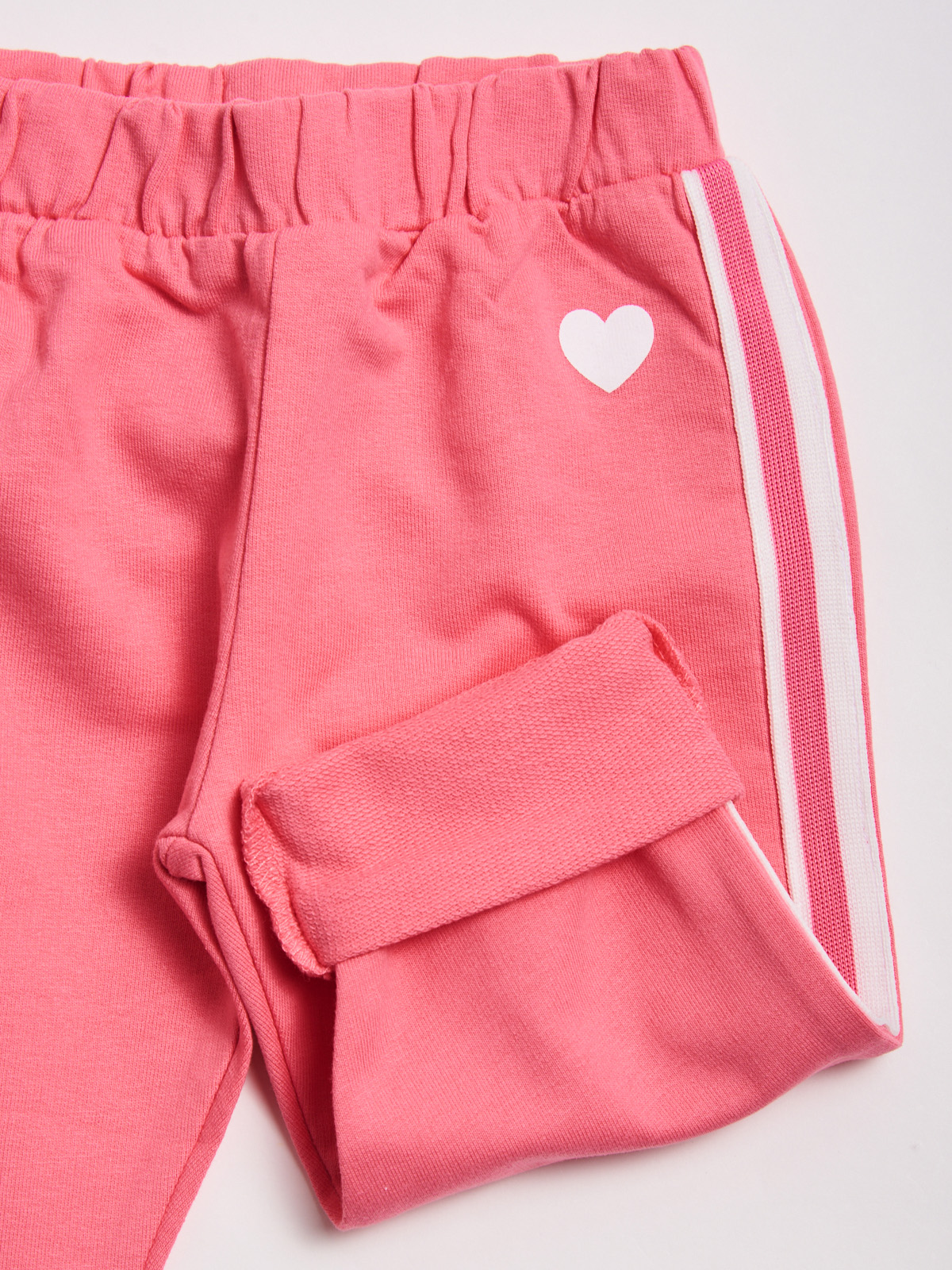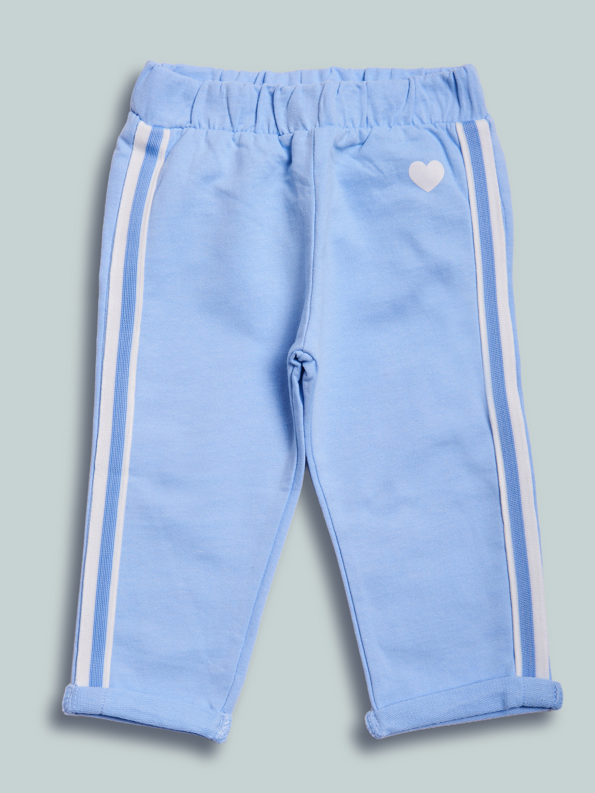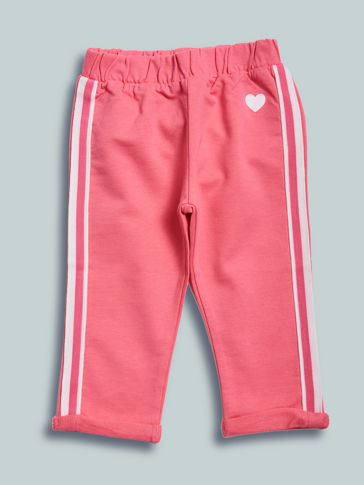 Pantaloni in morbida felpa leggera con vita elasticata per maggiore comoditร . Stampa cuoricino e fettuccia sul fianco per ancora piรน femminilitร . Un capo estremamente pratico e alla moda, ideale da indossare tutti i giorni.