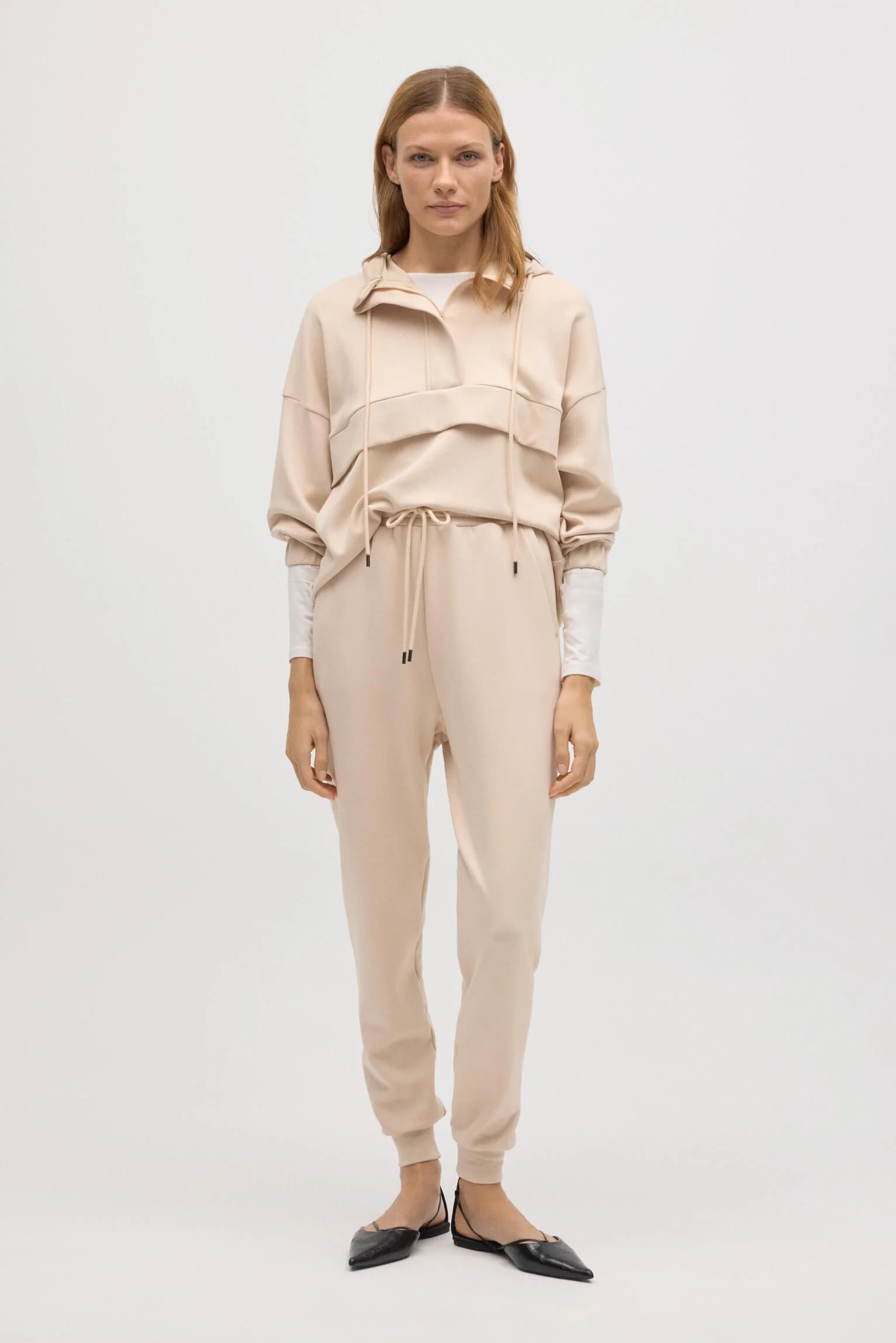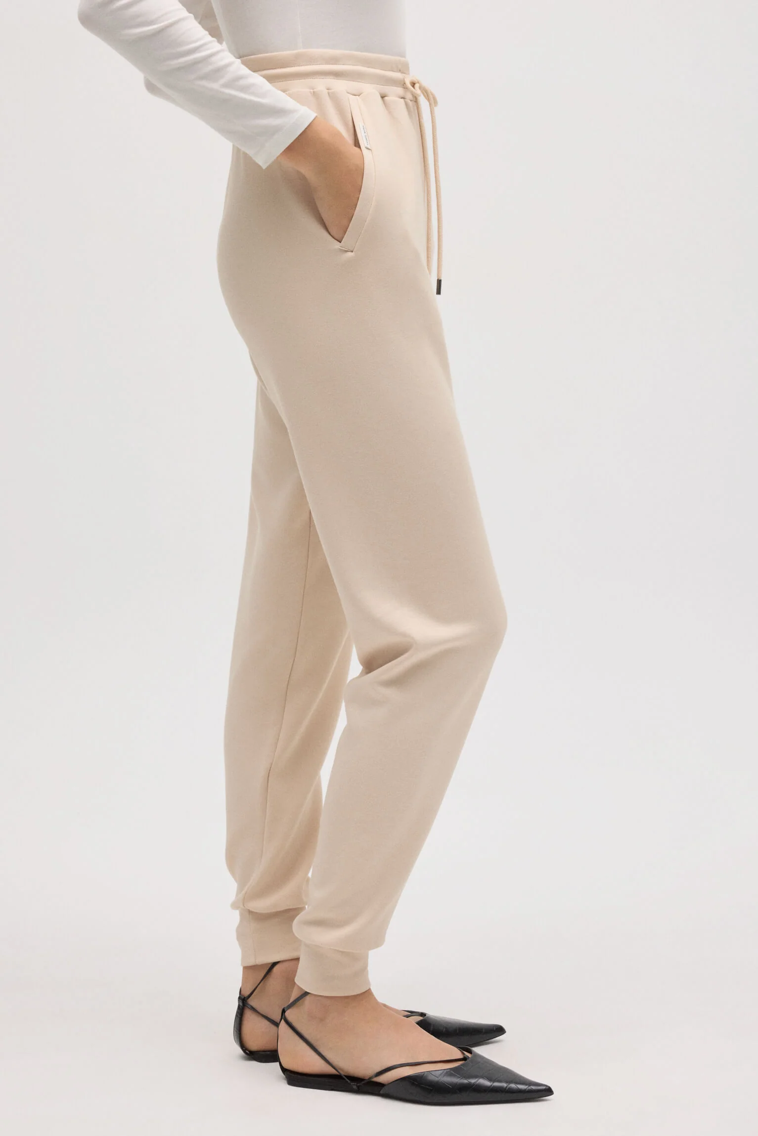 Pantaloni jogger fluidi color avorio. Caratteristiche