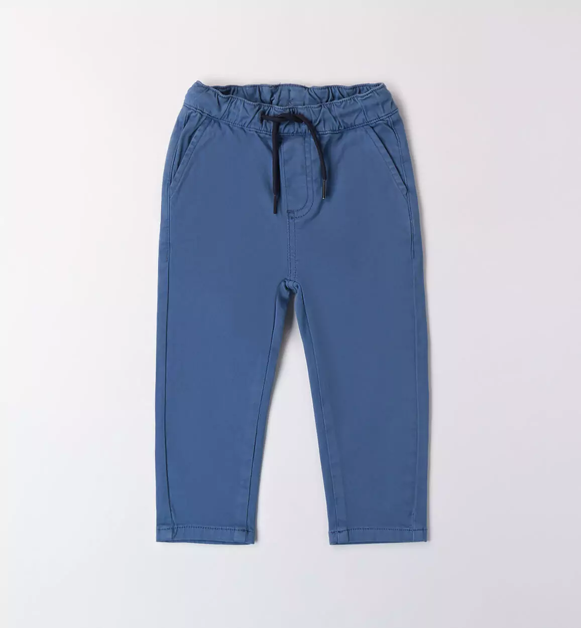 Pantalone da bambino Sarabandaย realizzato in twill. Il modello ha vita elasticizzata con coulisse, tasche e fantasia tinta unita. Vestibilitร loose fit.