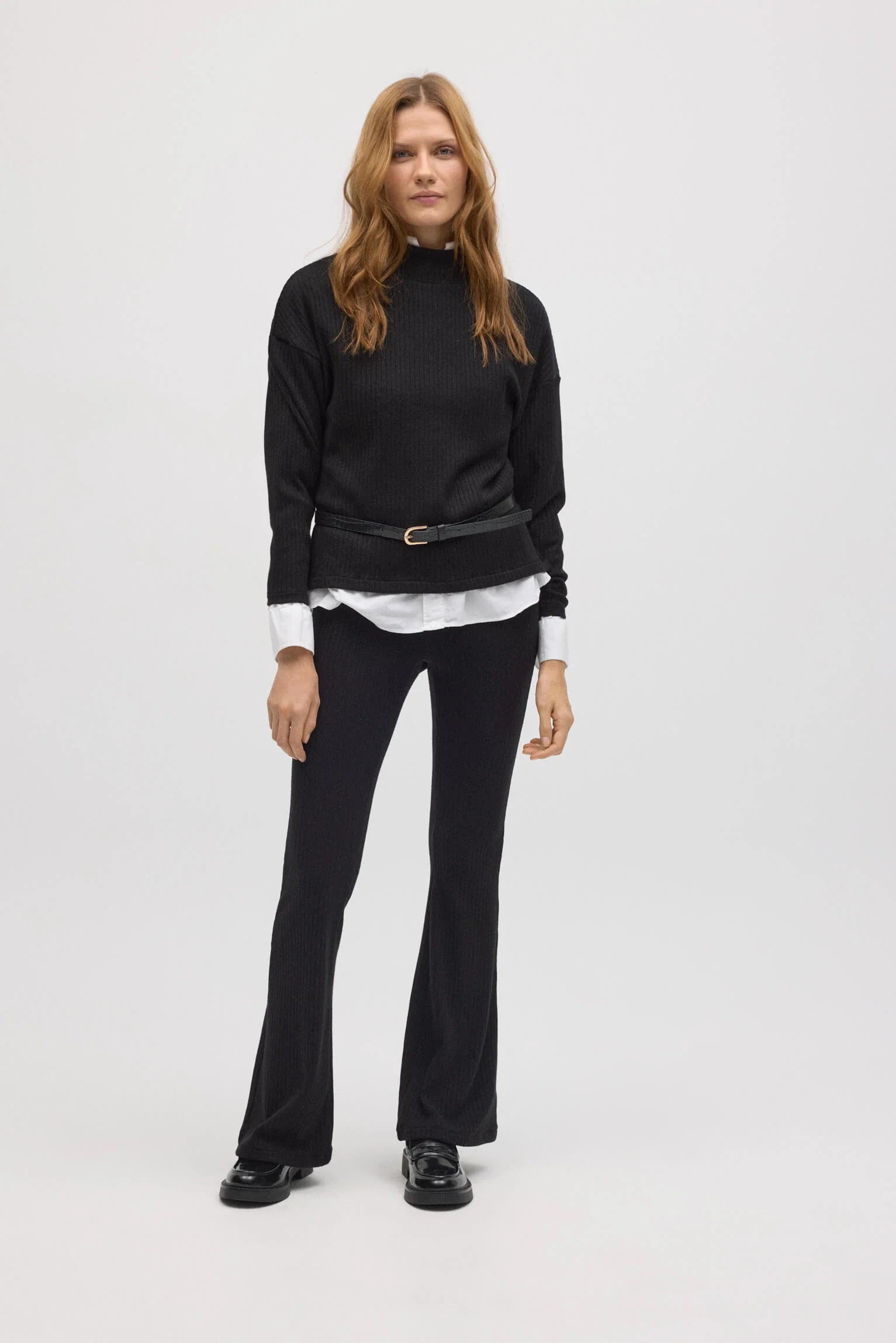 Pantaloni svasati in maglia a coste nere