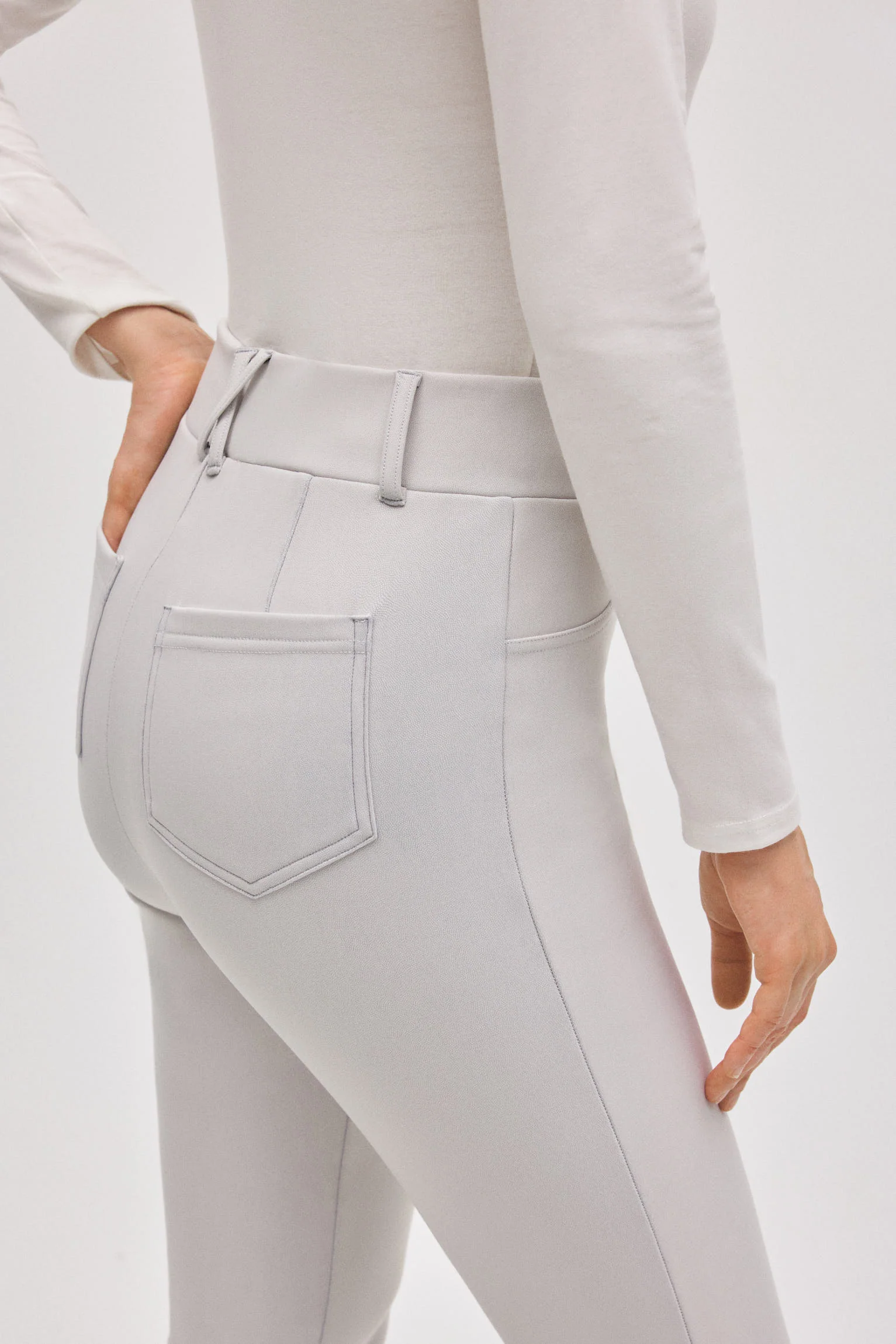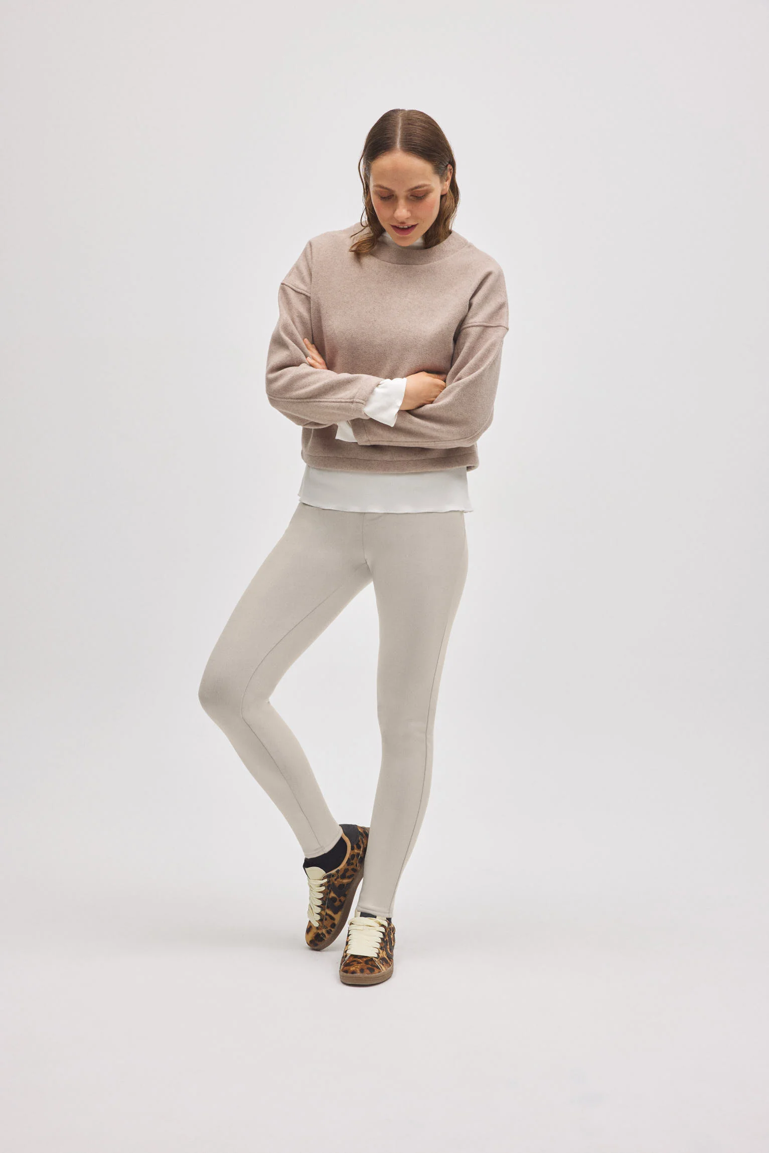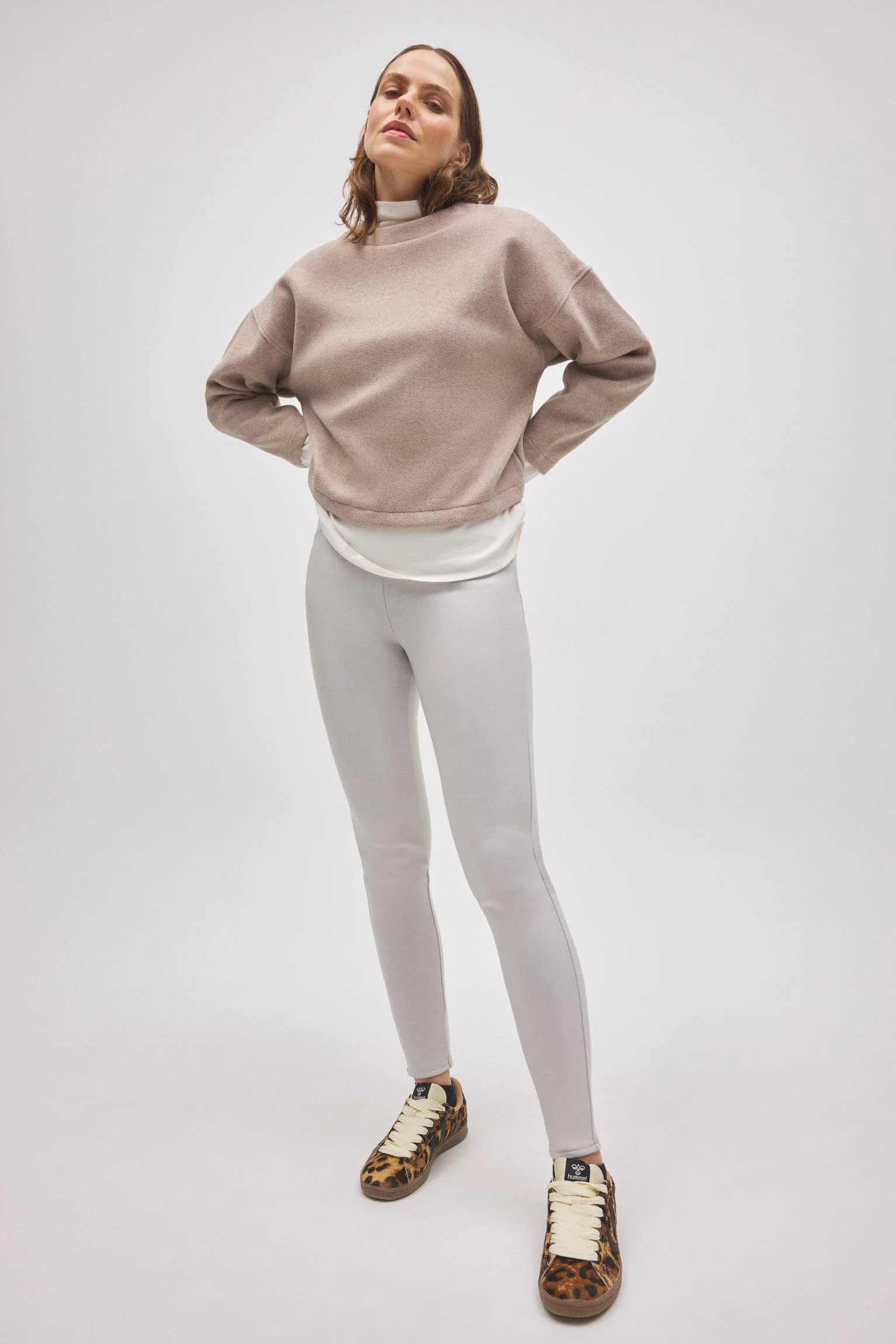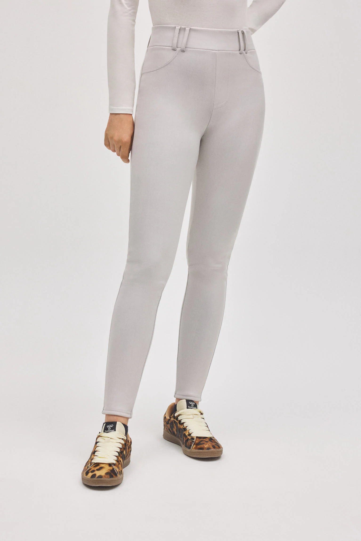 Pantaloni termici skinny effetto pelle elasticizzata color avorio