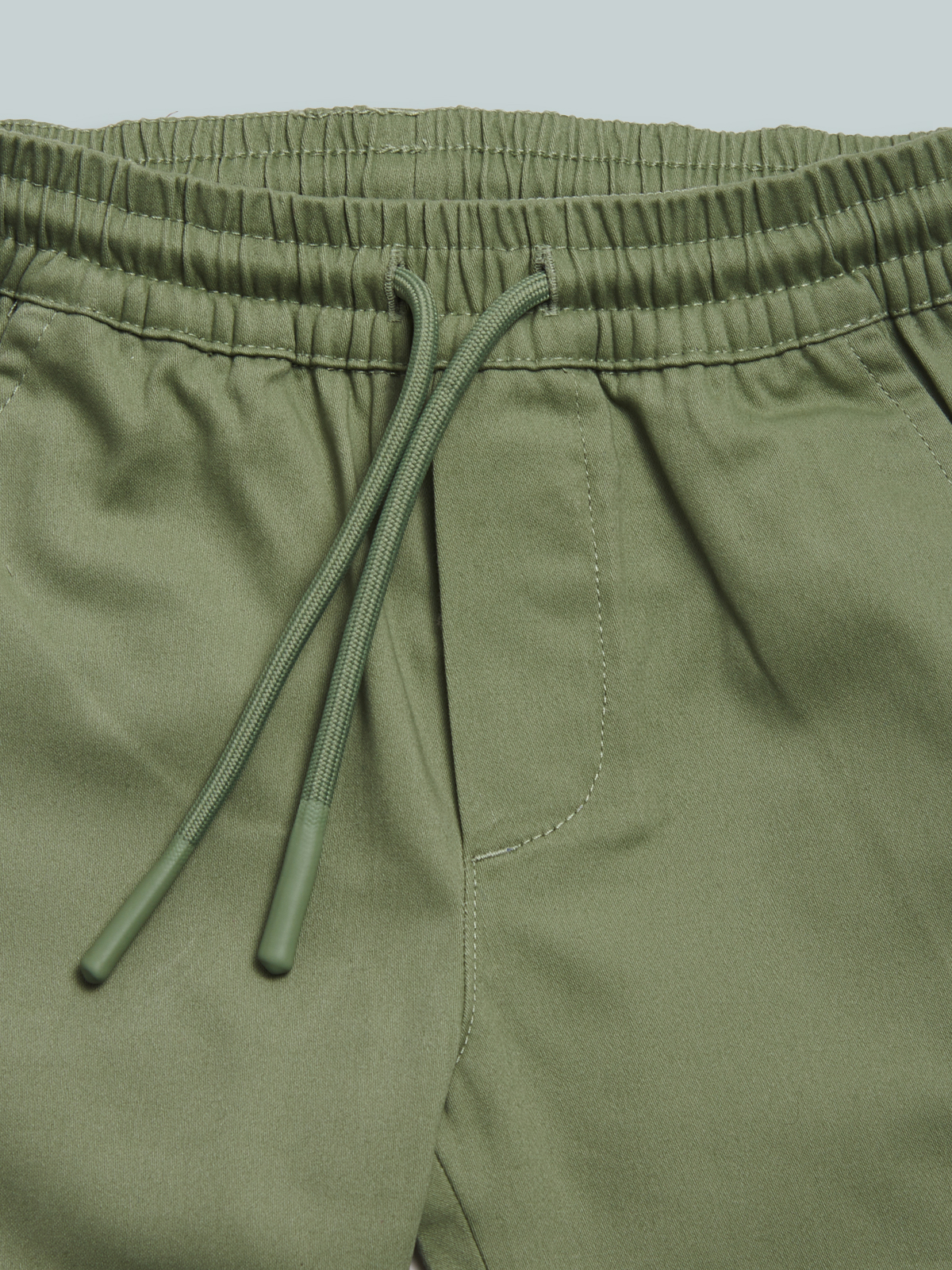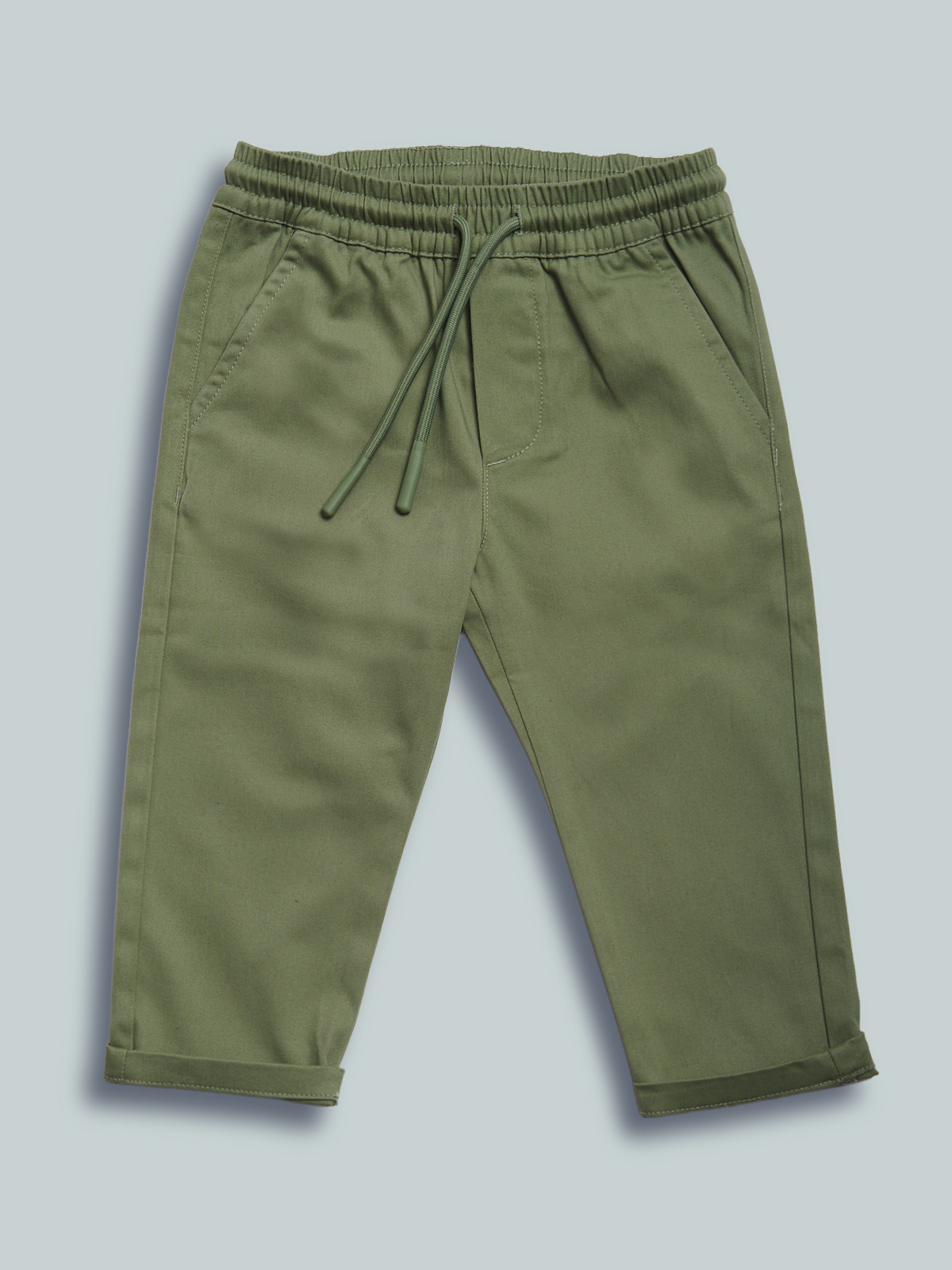 Pantaloni in tessuto elasticizzato elegante, modello chinos linea asciutta, vita elasticata con coulisse regolabile. Tasche davanti e finti filetti sul retro. Il capo ideale sia per un look casual che uno piรน elegante.